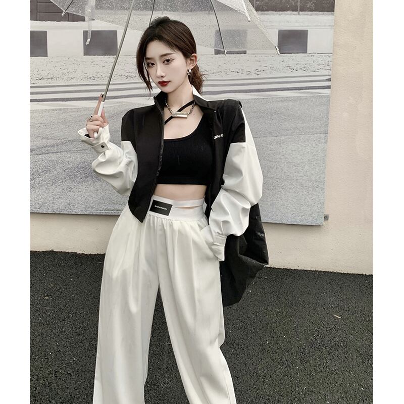 オータムショートブラックホワイトカラージャケット ハイウェスト ロング 秋物 セブンプリンセス20444984662