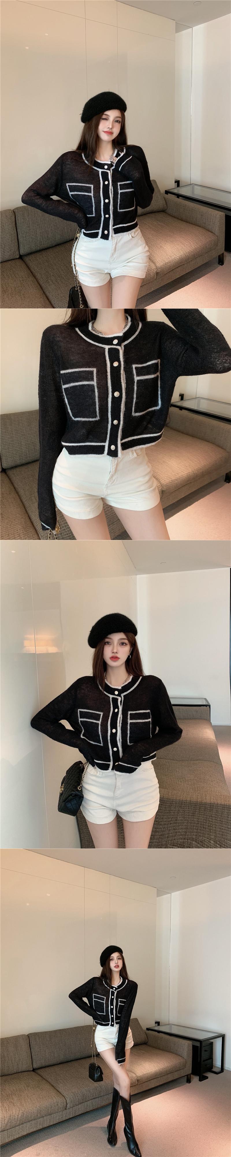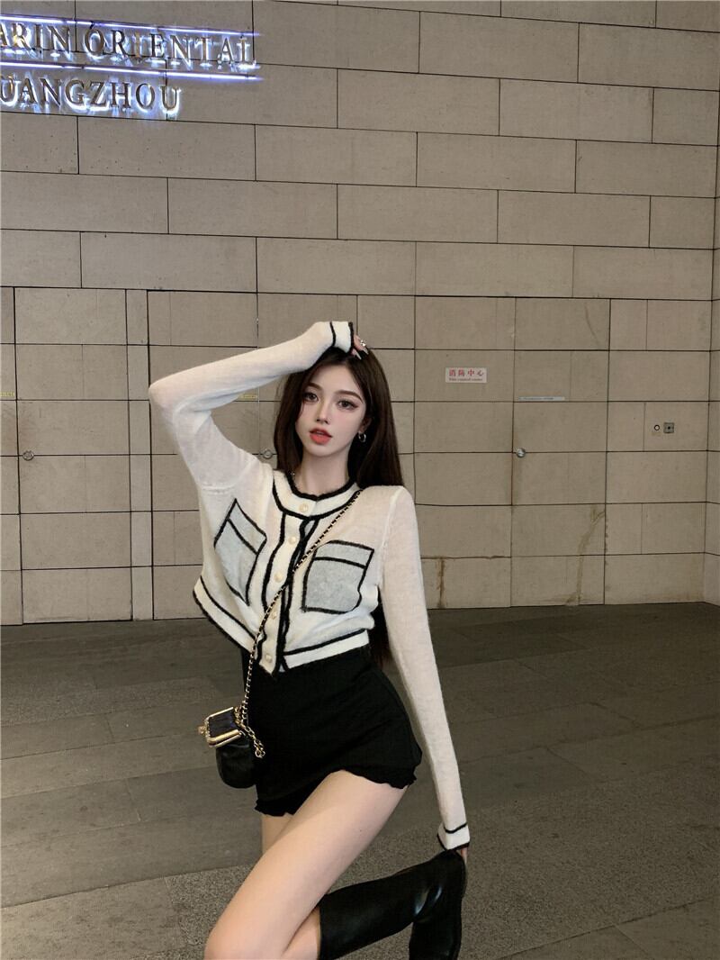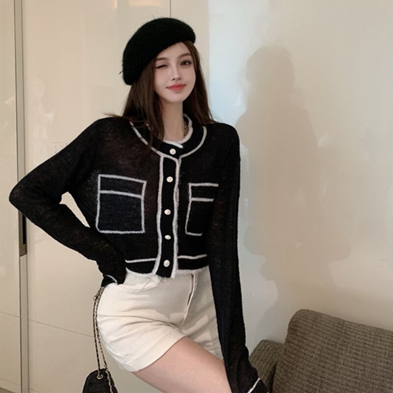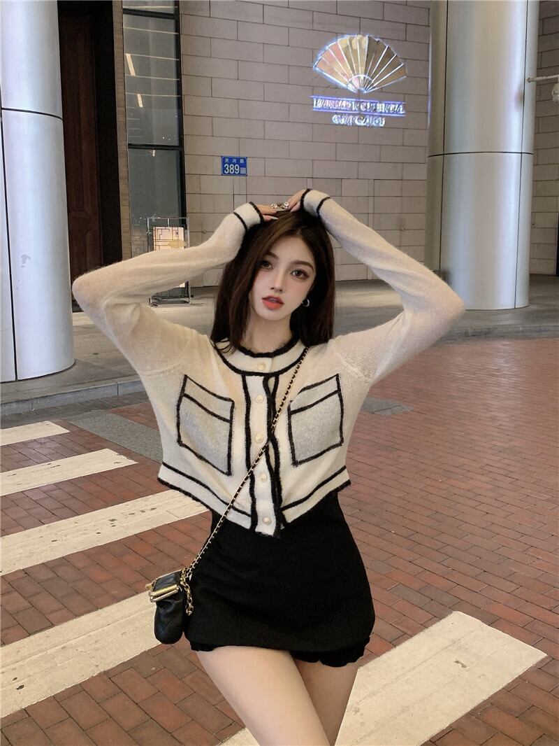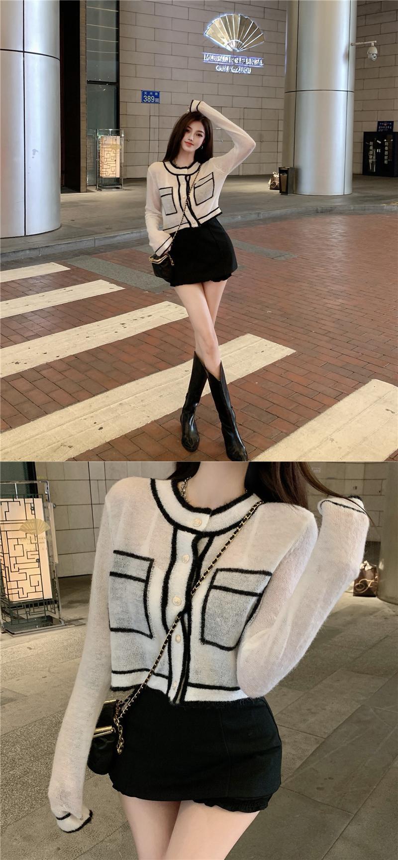 カラーニットカーディガンジャケット オータム薄手スタンダードショートトップス ロング レトロ 秋物 セブンプリンセス68464282263