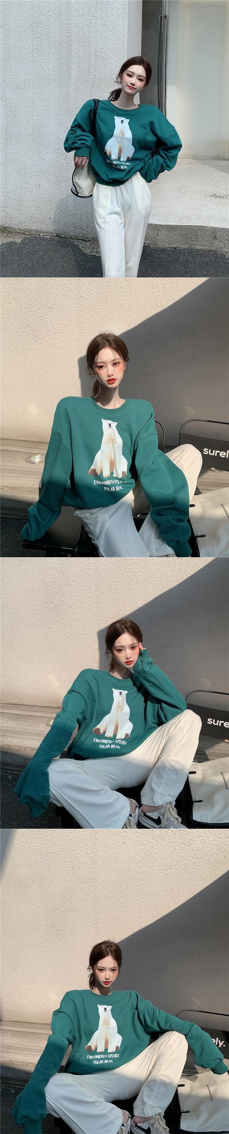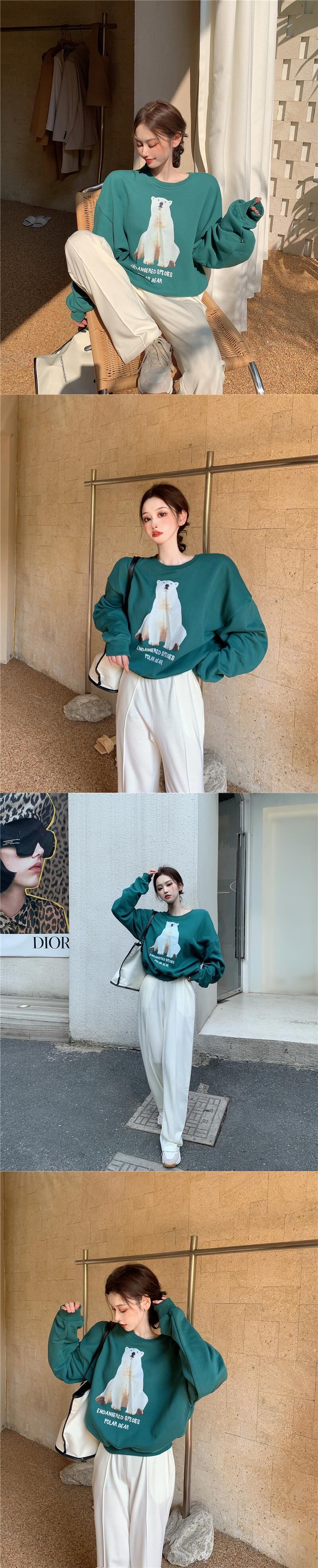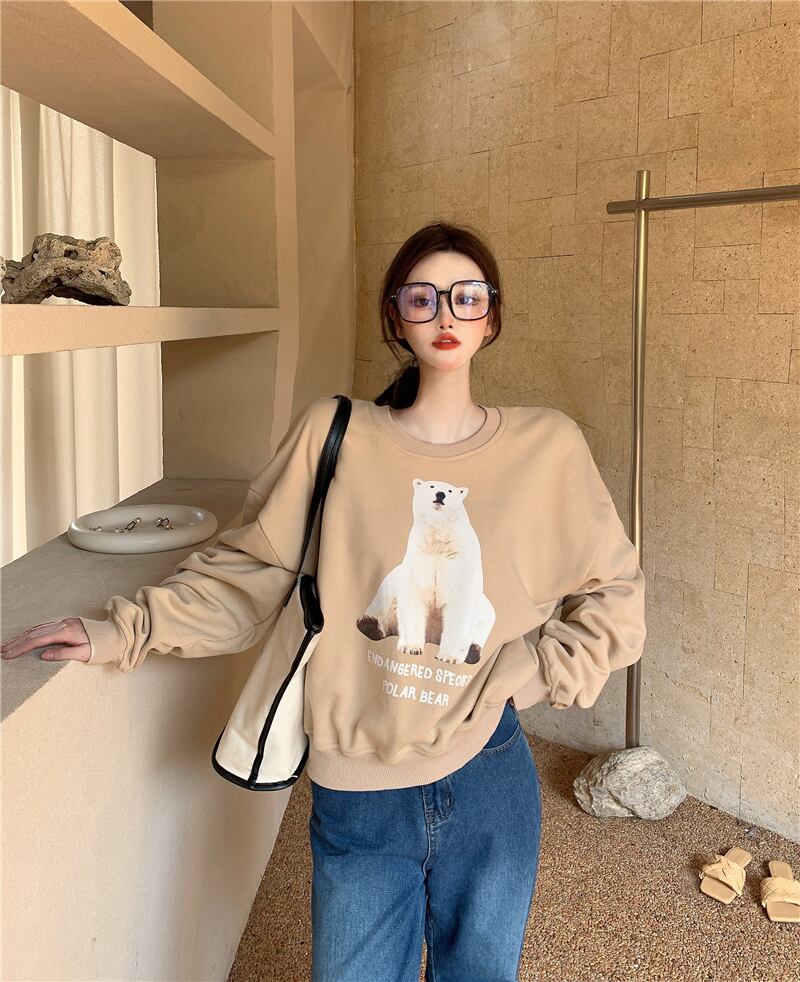 プリント柄ラウンドネックセーター スプリングオータム薄手ルーズソリッド カラープルオーバー コート ロング 春物 秋物 Oネック ソリッドカラー セブンプリンセス61437323090