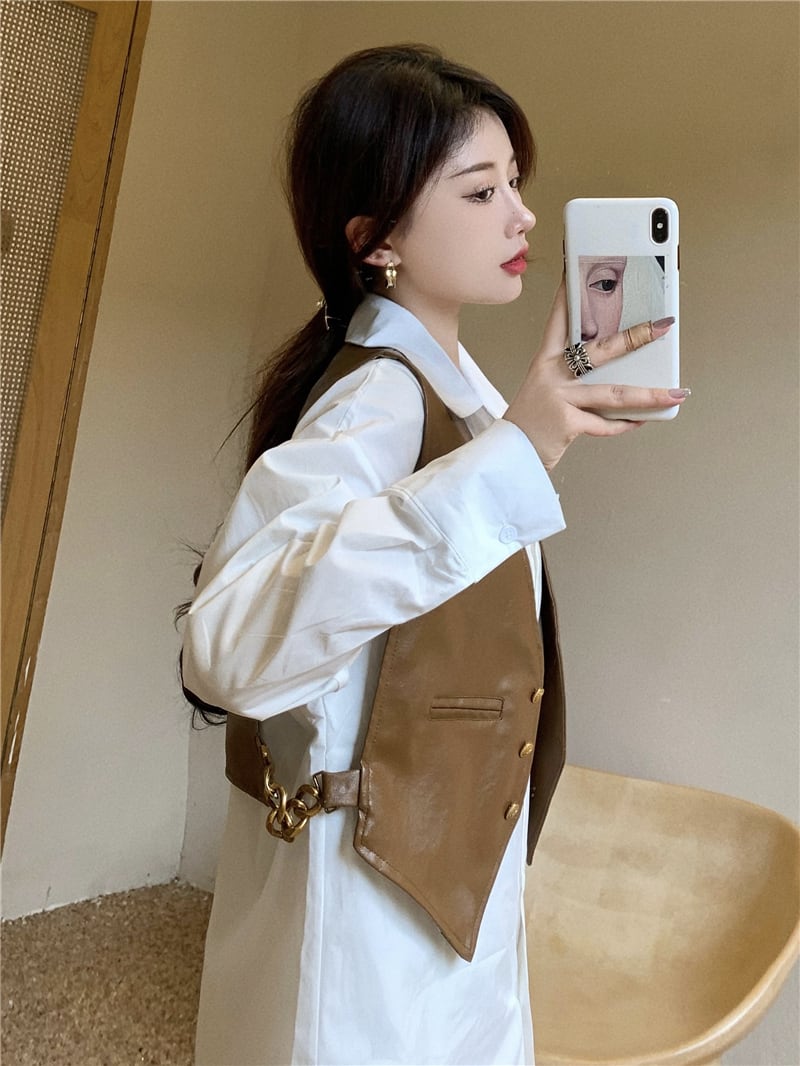 色:白のシャツ,黒のベスト,コーヒーベスト