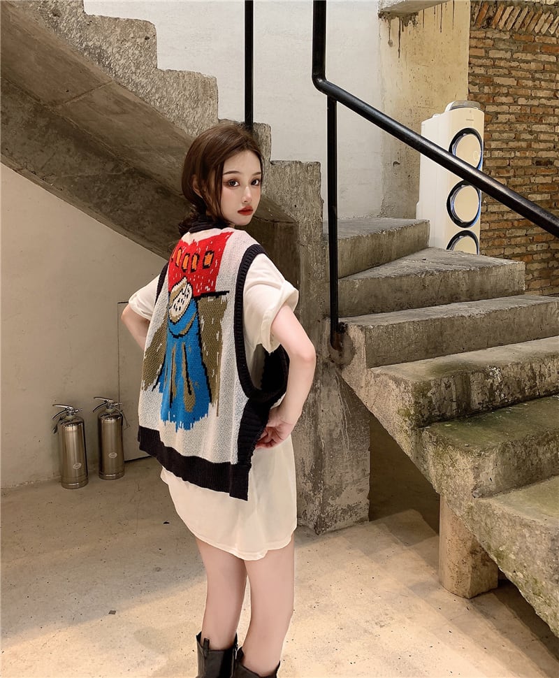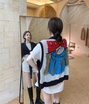 ニットレディーススプリングオータムスタンダードプリント柄ジャケット ルーズ レトロ 春物 秋物 セブンプリンセス49853463662