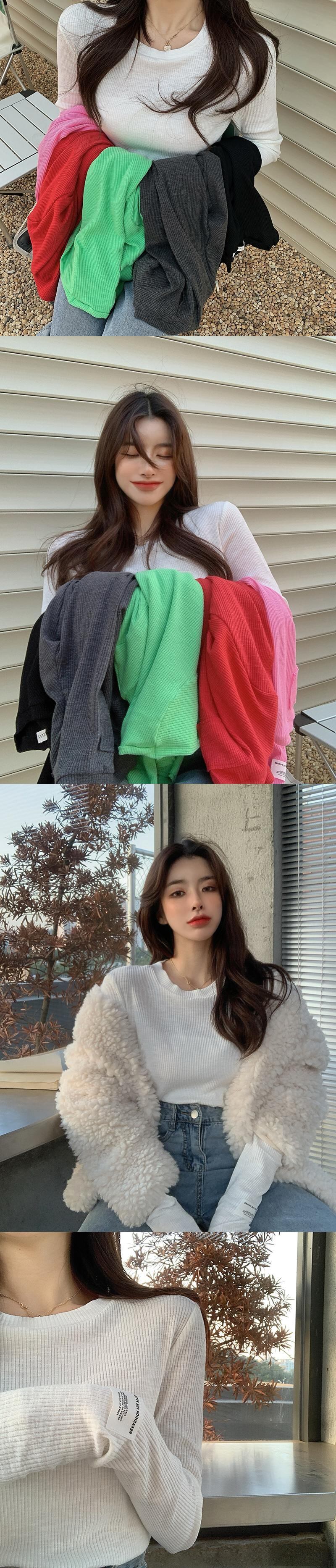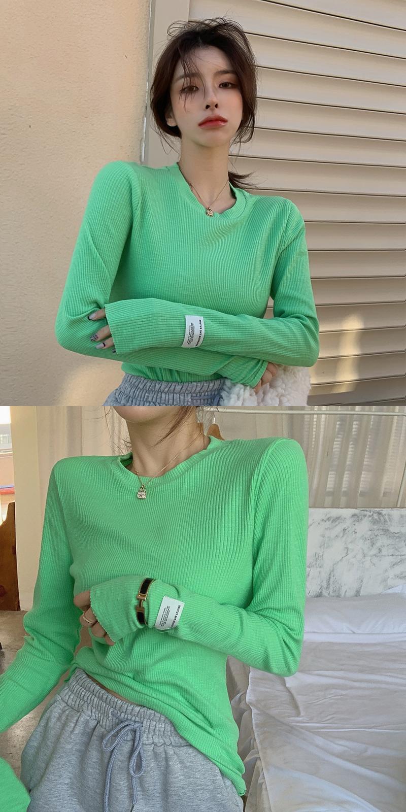 カラーラウンドネックTシャツ シャツ オータム薄手スリムスタイルトップス ロング 秋物 Oネック セブンプリンセス13054518625