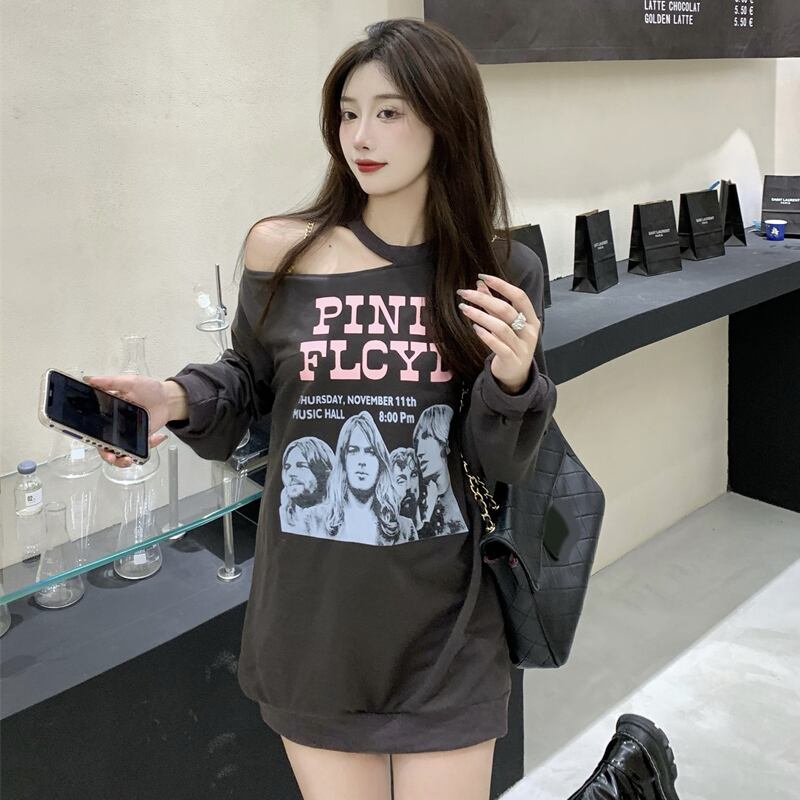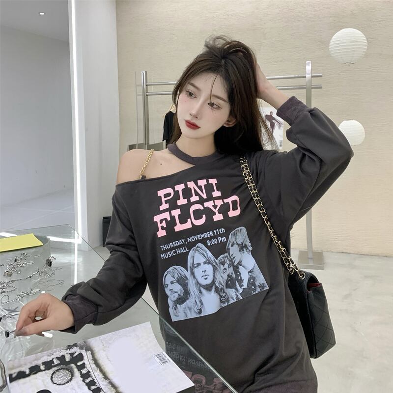 オフショルダーセーター オータムルーズラウンドネック長袖スリーブトップス ロング 秋物 Oネック セブンプリンセス25664687764