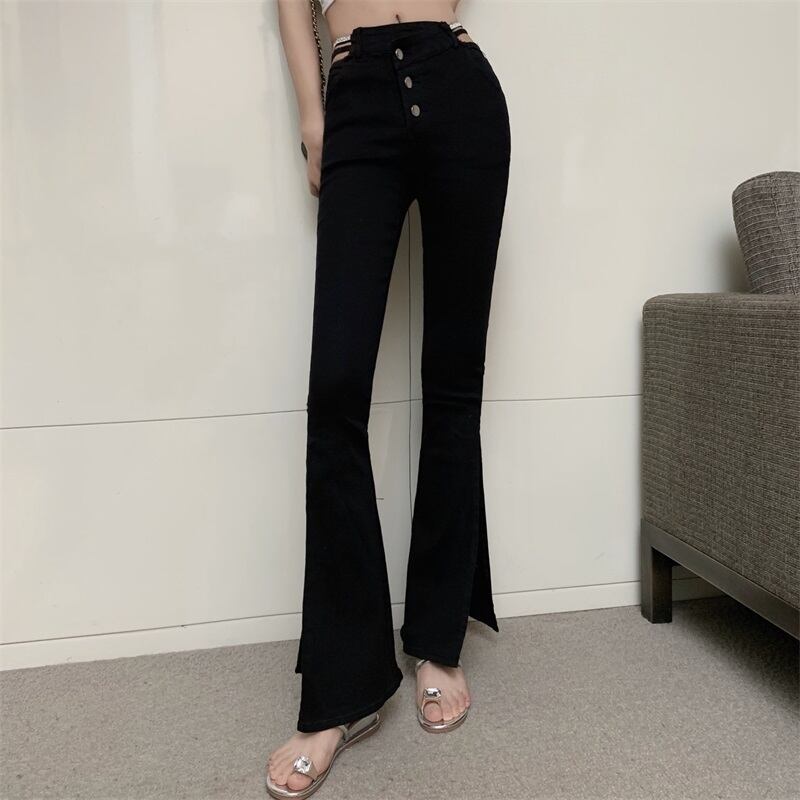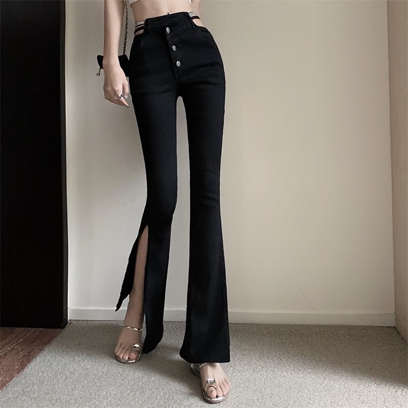ブラックスリットパンツ レディーススプリングオータムウェストカジュアル レッド 春物 秋物 セブンプリンセス40163766899