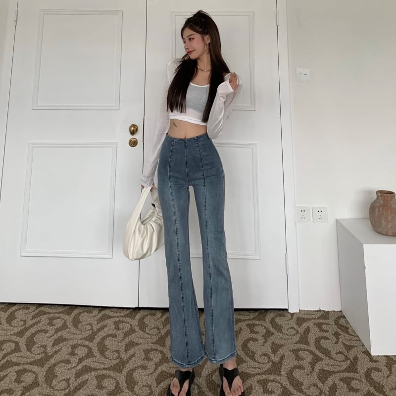 ブラックスタンダードハイウェストジーンズ ルーズパンツ 薄手 レッド レトロ セブンプリンセス17100419432