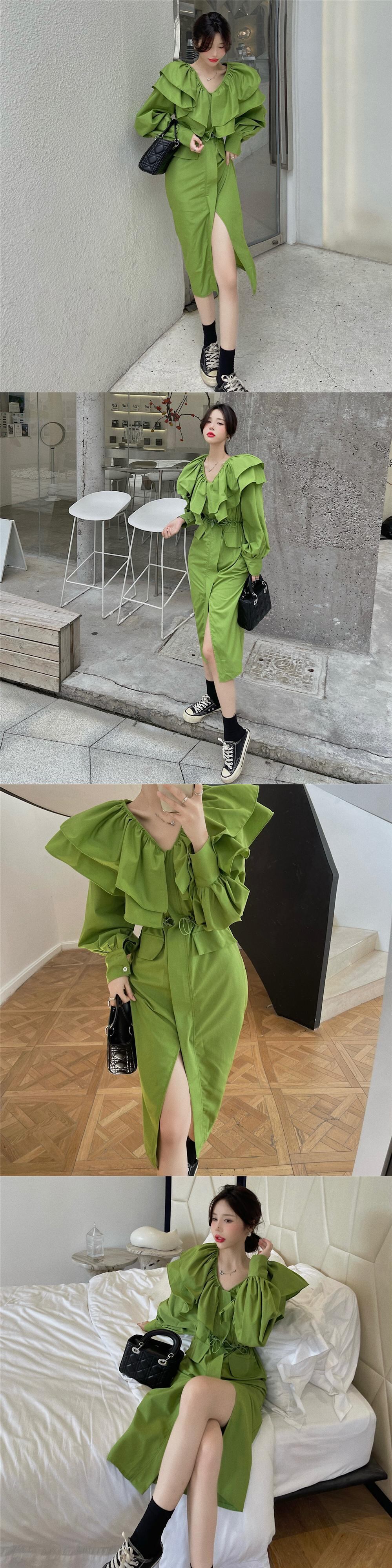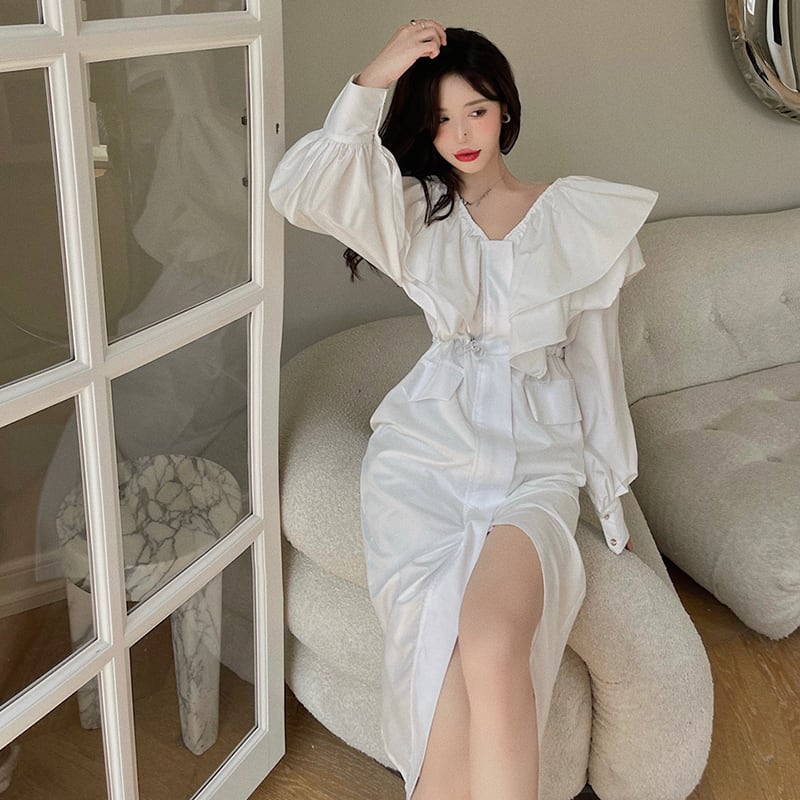 オータムドレス ウェストVネックスカート ロング 秋物 セブンプリンセス93904055018