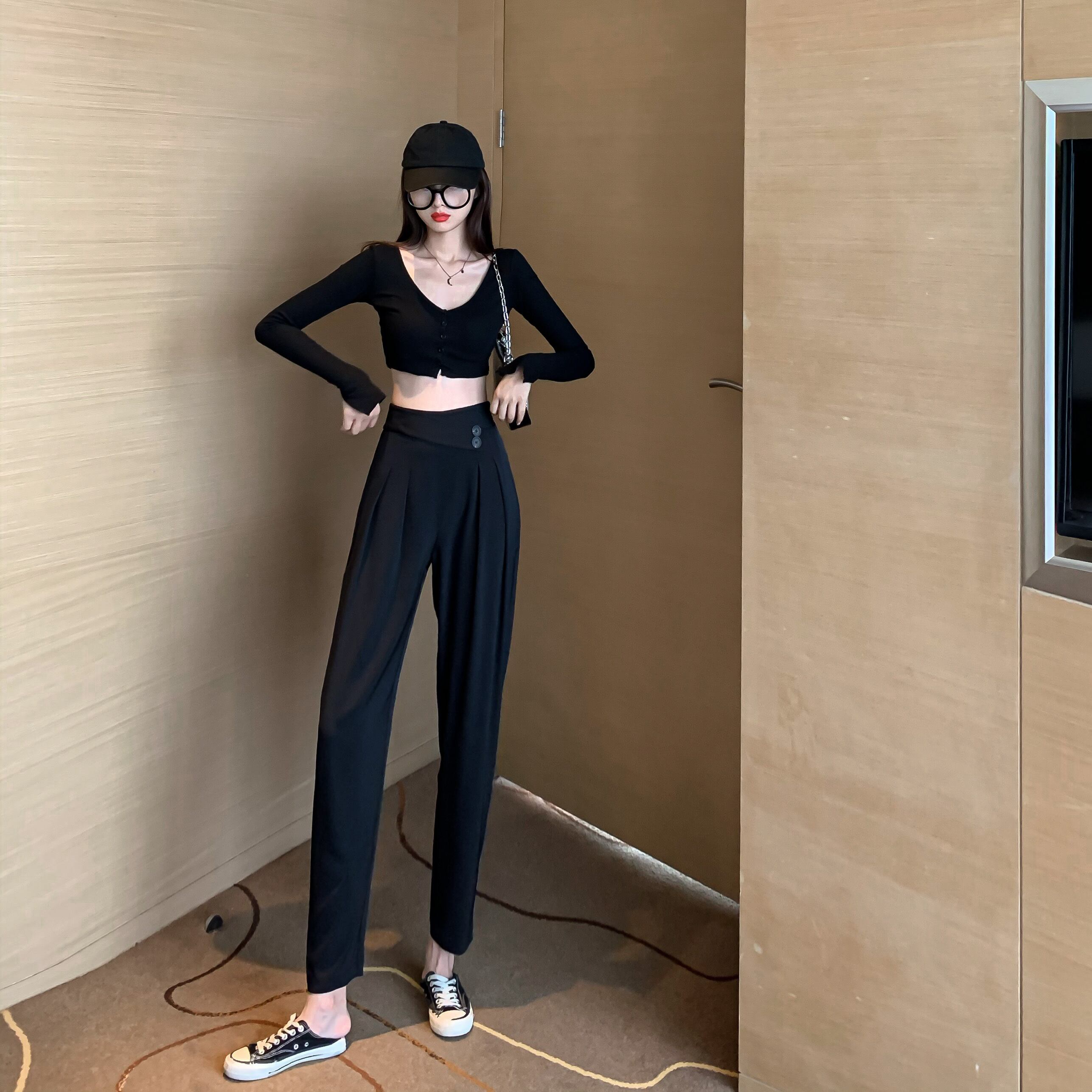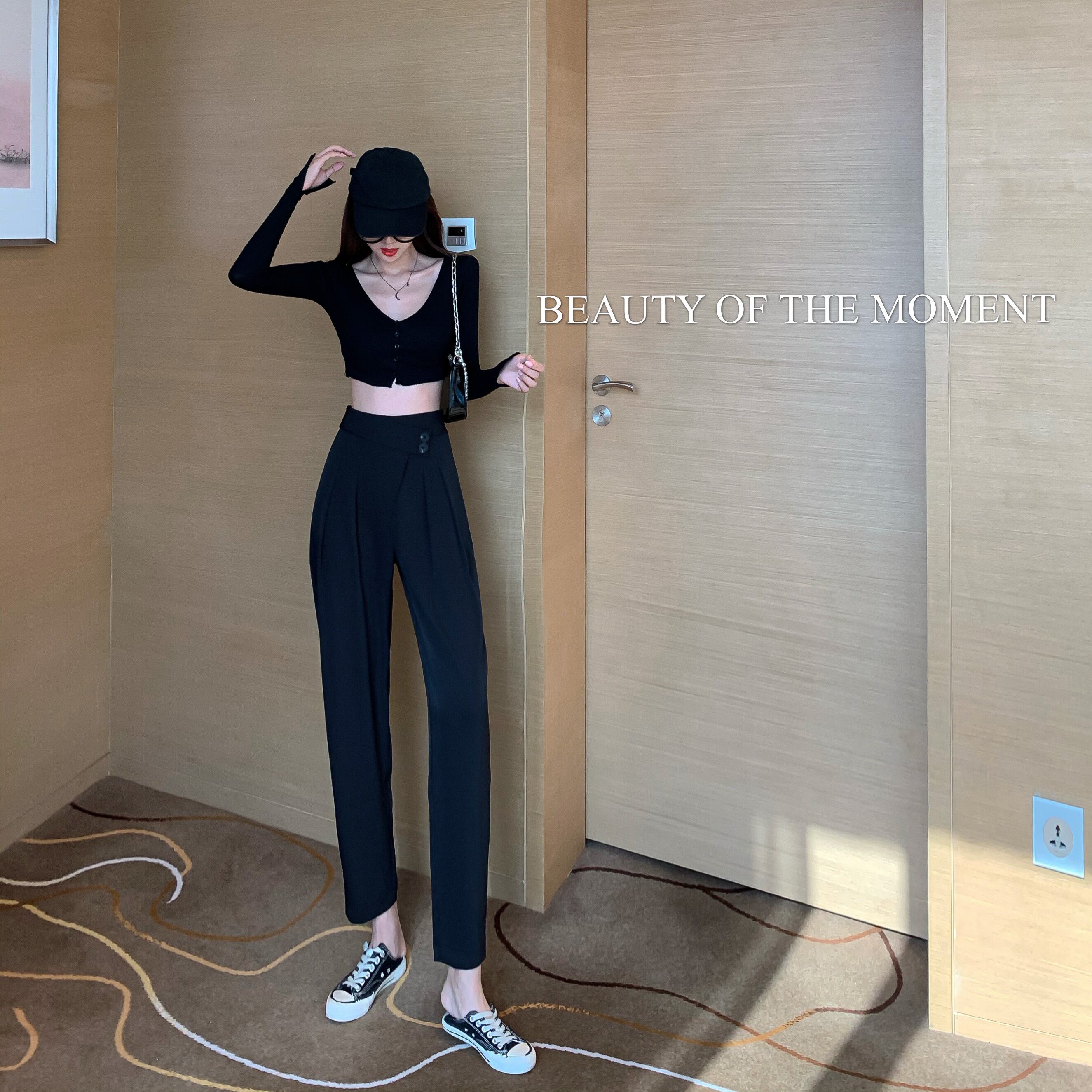 ブラックパンツ スプリングオータムルーズカジュアルハイウェスト 春物 秋物 セブンプリンセス24781137932