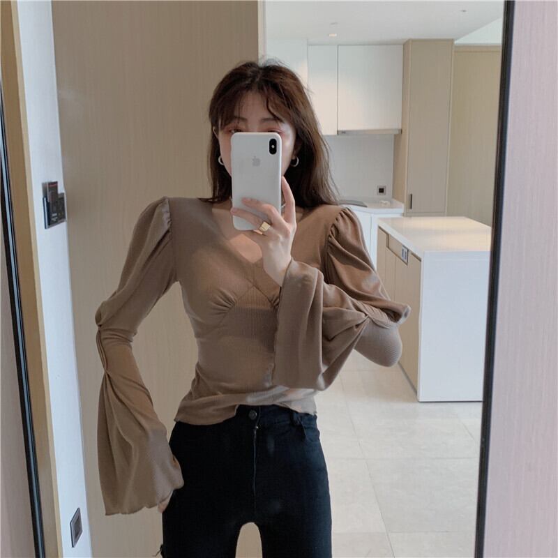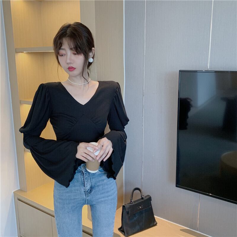 ショートVネックTシャツ シャツ スリムオータムトップス レディース ロング 秋物 セブンプリンセス48639569423