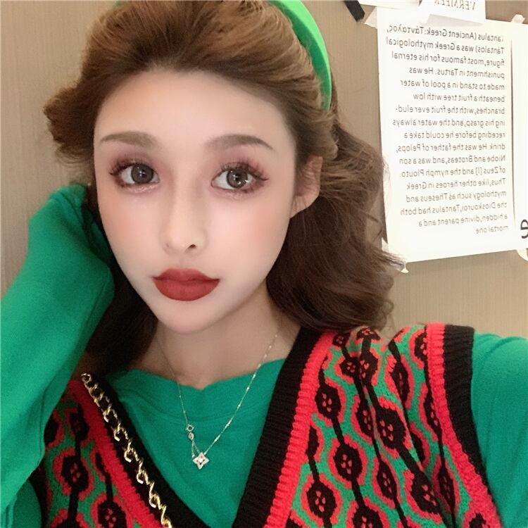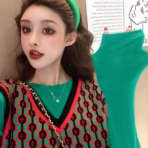 Vネックニットジャケット スプリングオータムスタンダードショートレッド レトロ 春物 秋物 セブンプリンセス17900637999