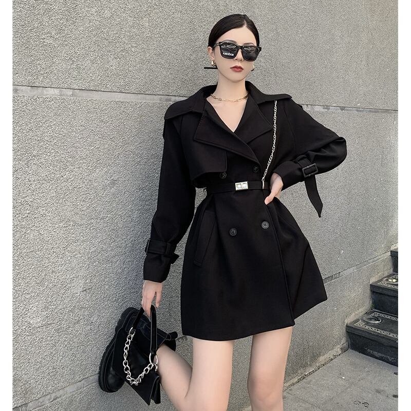 ブラックジャケット スプリングオータムウェストカジュアルシャツ ロング 春物 秋物 セブンプリンセス15114703111