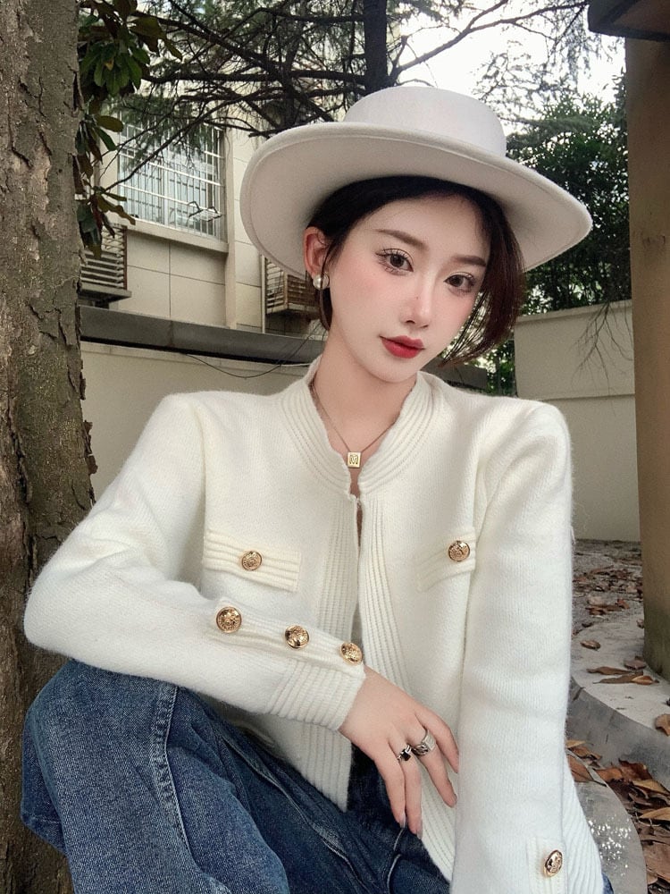 セーター ジャケット カーディガンレディーススプリングオータムルーズメタルバックルスタンダードスタイルトップス ロング レトロ 春物 秋物 セブンプリンセス20855882319