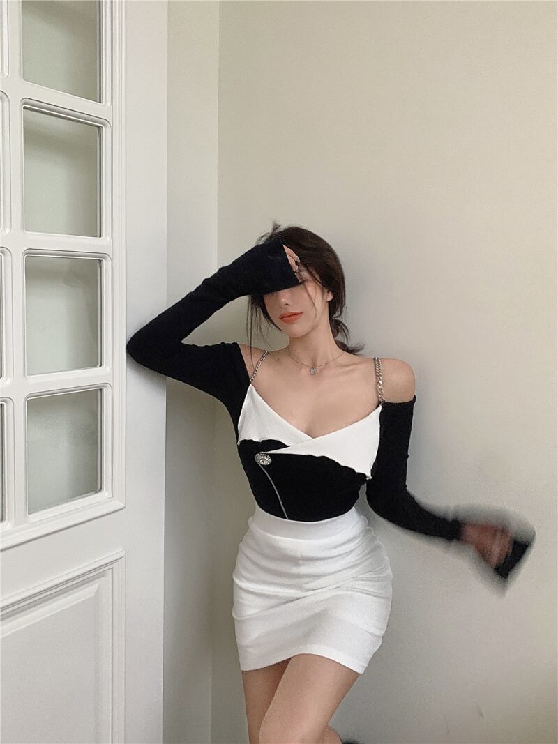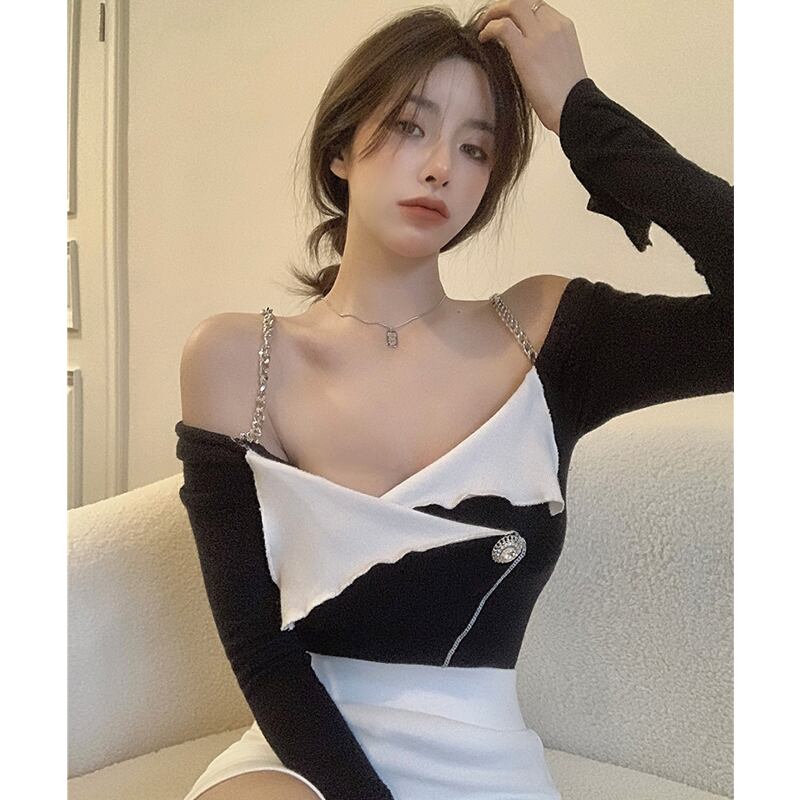ショートTシャツ シャツ オータムチェーン トップス スタイル薄手 ロング 秋物 セブンプリンセス28918650961