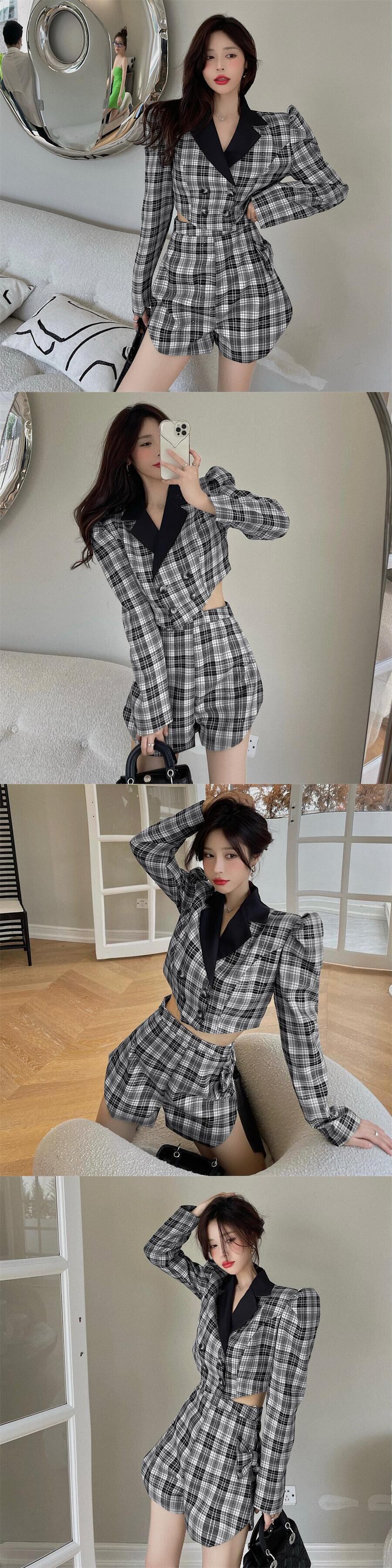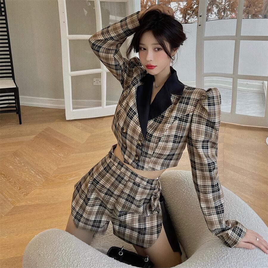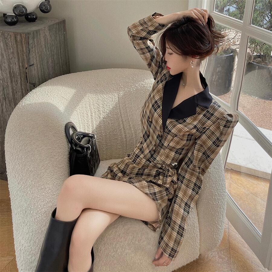 ショートジャケット スプリングオータムスタンダード格子柄薄手シャツ ロング レトロ ストリート 春物 秋物 セブンプリンセス61667660324