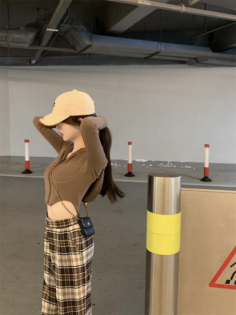 スタンダードショートニットカーディガンジャケット オータムスタイル薄手Vネックジッパーフードトップス ロング レトロ 秋物 セブンプリンセス97945091194