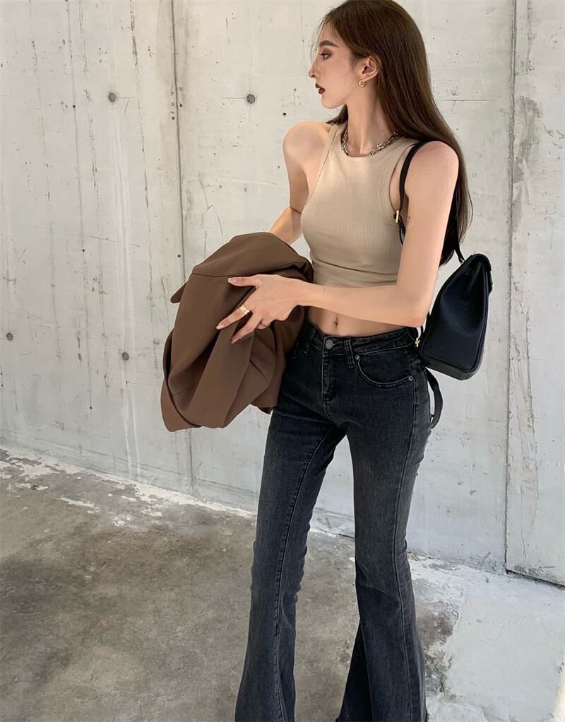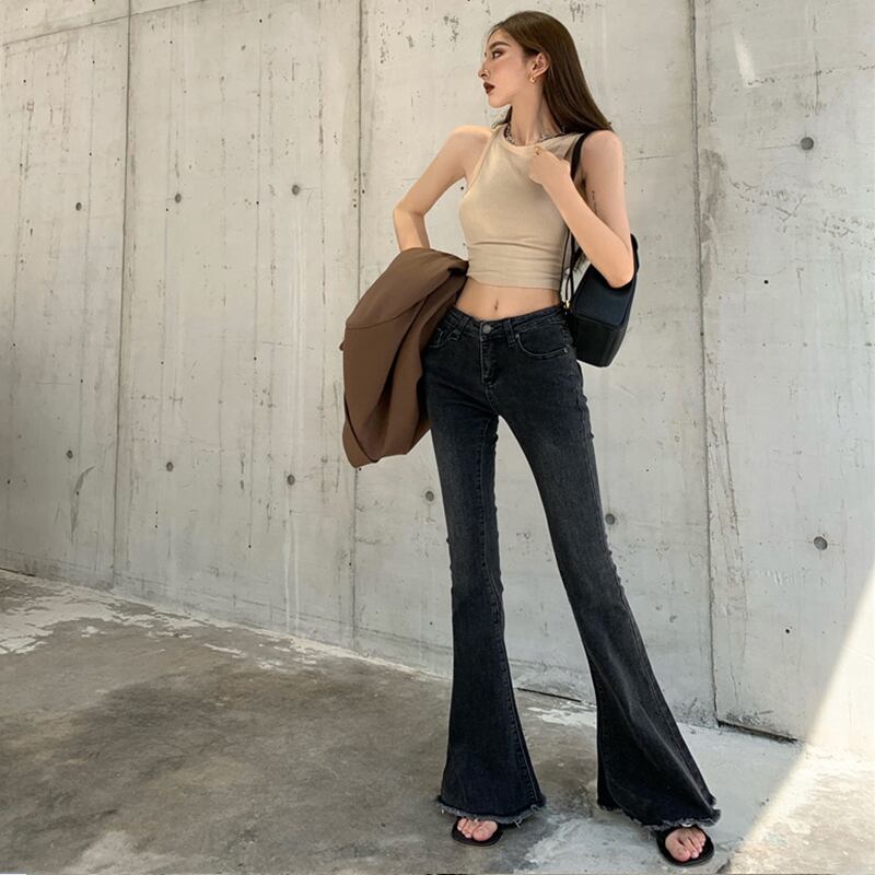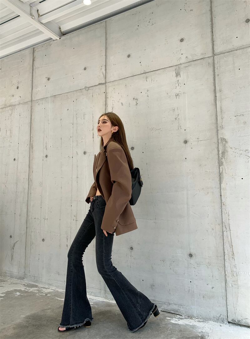 スタンダードハイウェストウェストジーンズ レディーススプリングオータムパンツ 薄手 レッド レトロ 春物 秋物 セブンプリンセス62722878269