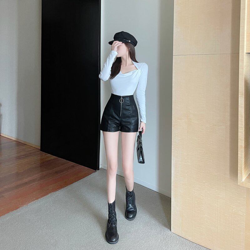 ウェストショーツ スプリングオータムブラックレザーパンツ 薄手スキニーブーツレッドAライン 靴 シューズ 春物 秋物 ブルマー セブンプリンセス5632422659