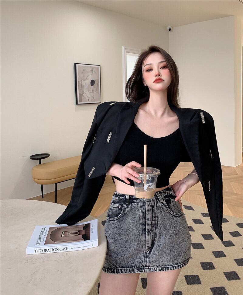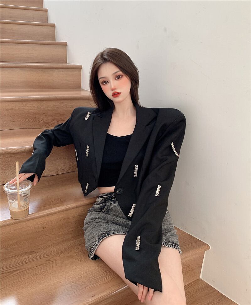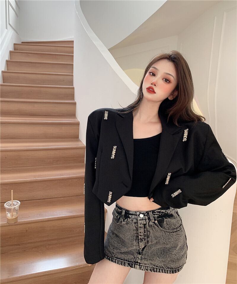 ブラックショートジャケット スプリングオータムスタイルルーズトップス ロング 春物 秋物 セブンプリンセス61316323731
