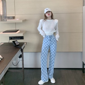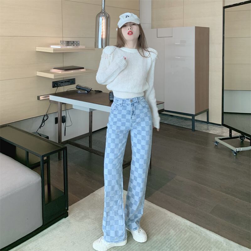 ジーンズ 格子柄スタンダードルーズパンツ レトロ かわいい セブンプリンセス10228675713