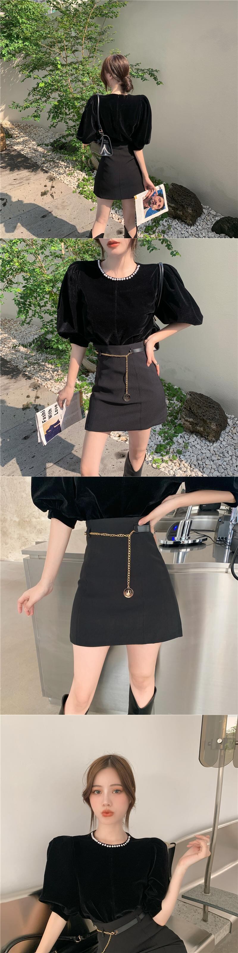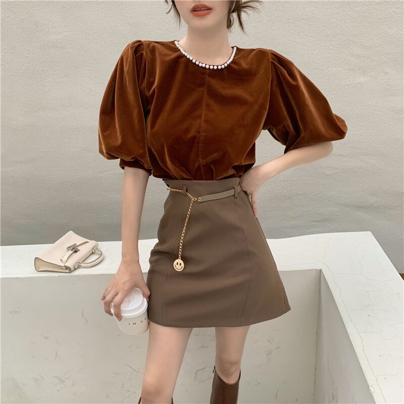 スタンダードベルベットシャツ レディースオータムスタイルパールルーズ レトロ 秋物 真珠 セブンプリンセス82935515718