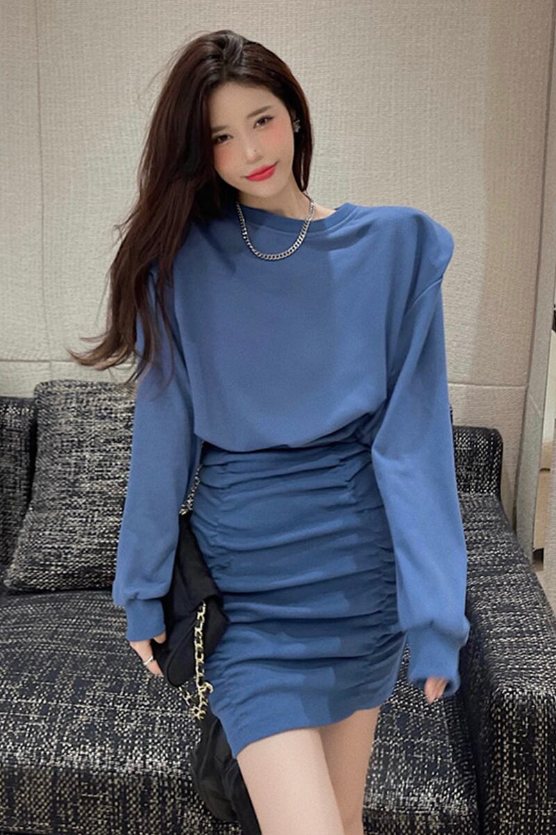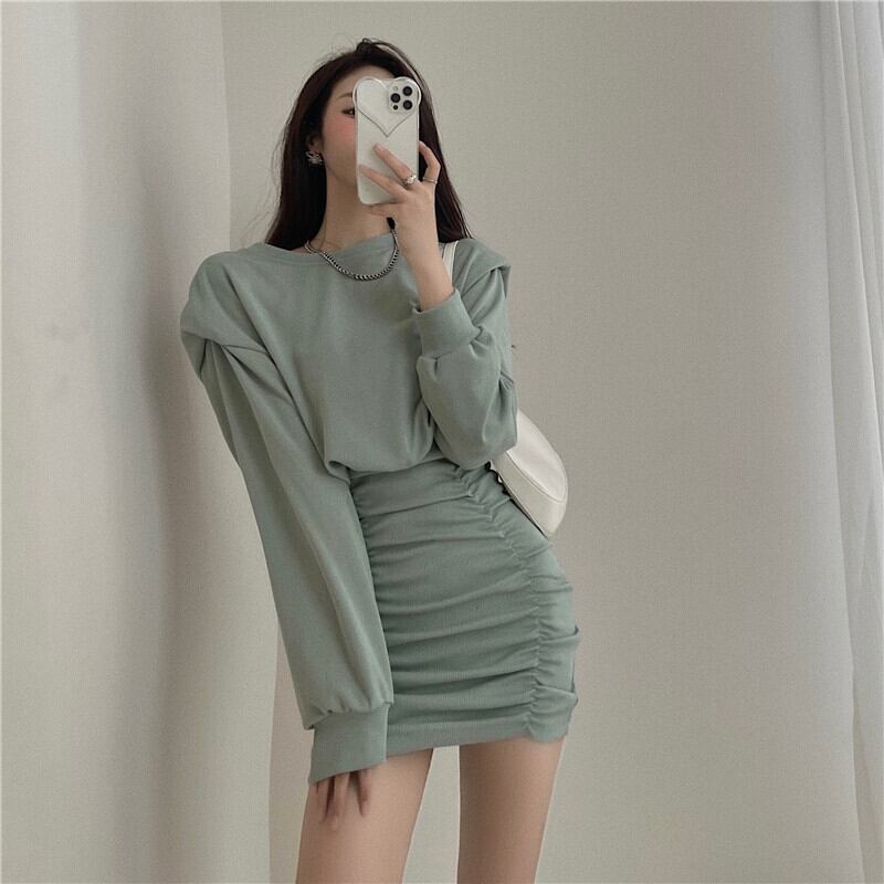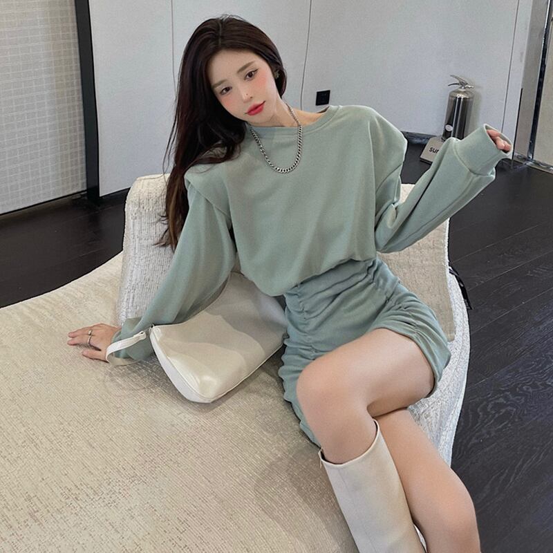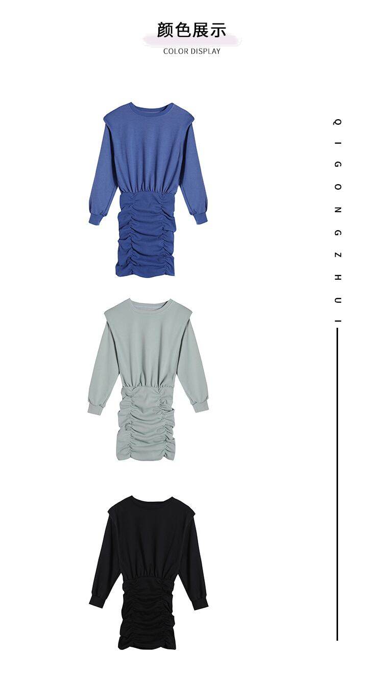 ブラックドレス スプリングオータム薄手スタイルスリムウェストスカート プリーツセーター ロング 春物 秋物 セブンプリンセス3419858528