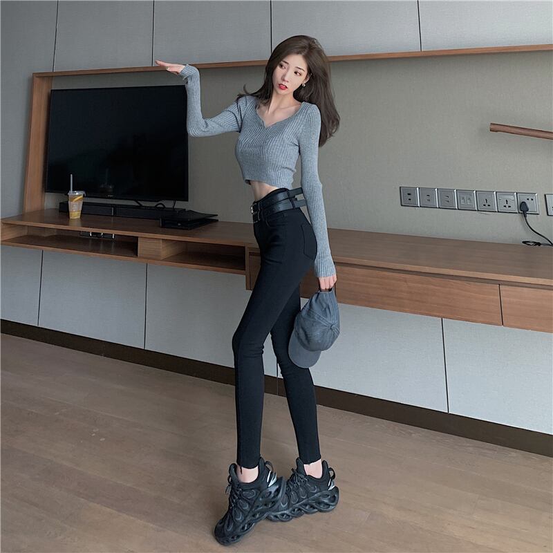 ブラックハイウェストジーンズ レディーススプリングオータムスタンダードパンツ 薄手 レトロ 春物 秋物 セブンプリンセス57090567008