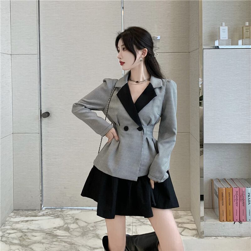 グレージャケット スプリングオータムスタンダードウェストVネックトップス ロング レトロ 春物 秋物 セブンプリンセス84708389404