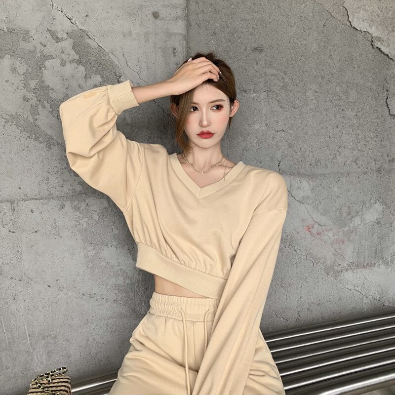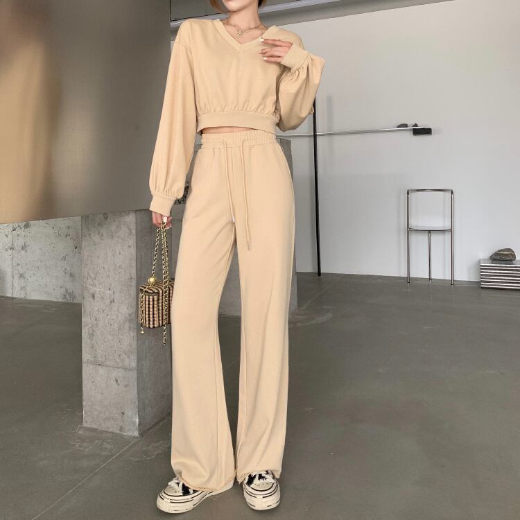 Vネックショートセーター ハイウェスト薄手パンツ セブンプリンセス37326192667