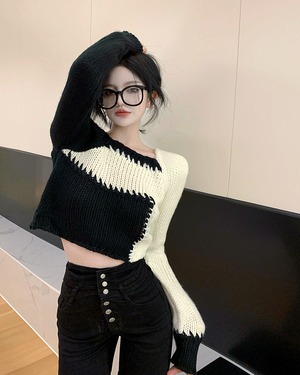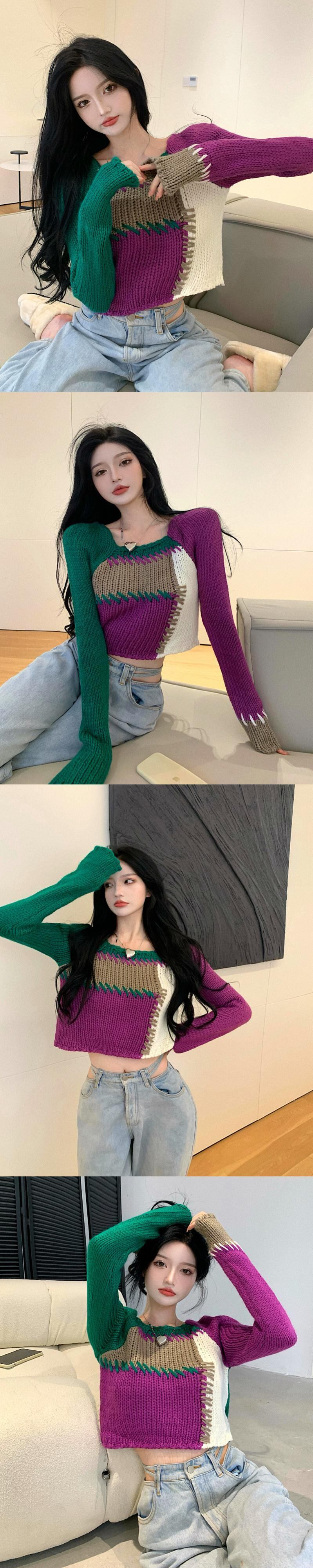ショートセーター スプリングオータム薄手カラースタンダードニットプルオーバー トップス ロング レトロ 春物 秋物 スクウェア セブンプリンセス2288691284