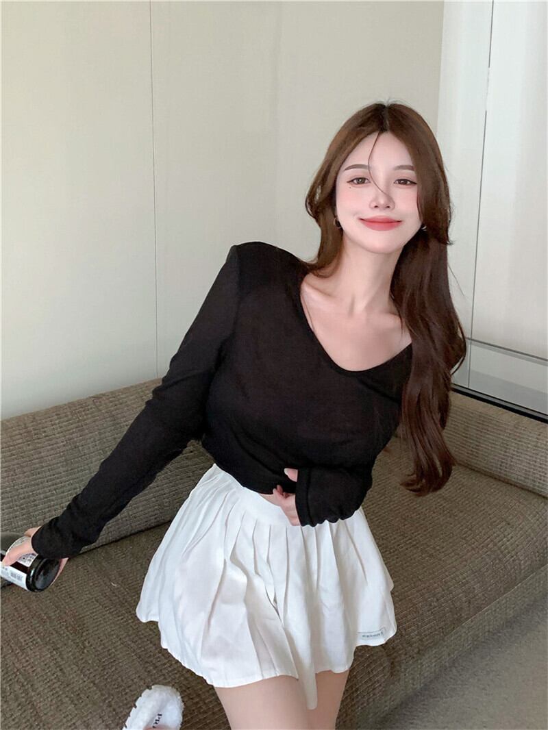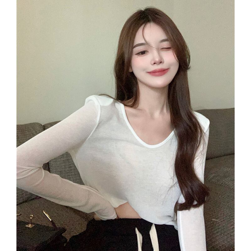 ショートオータムブラウス ソリッド カラーシャツ スリム薄手Tシャツ ロング 秋物 ソリッドカラー セブンプリンセス58209294187