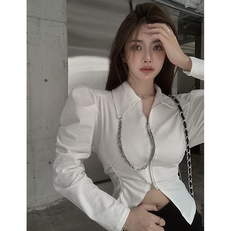 スリーブホワイトシャツ レディーススタンダードスタイルショート薄手オータムトップス ロング レトロ 秋物 セブンプリンセス7636543825
