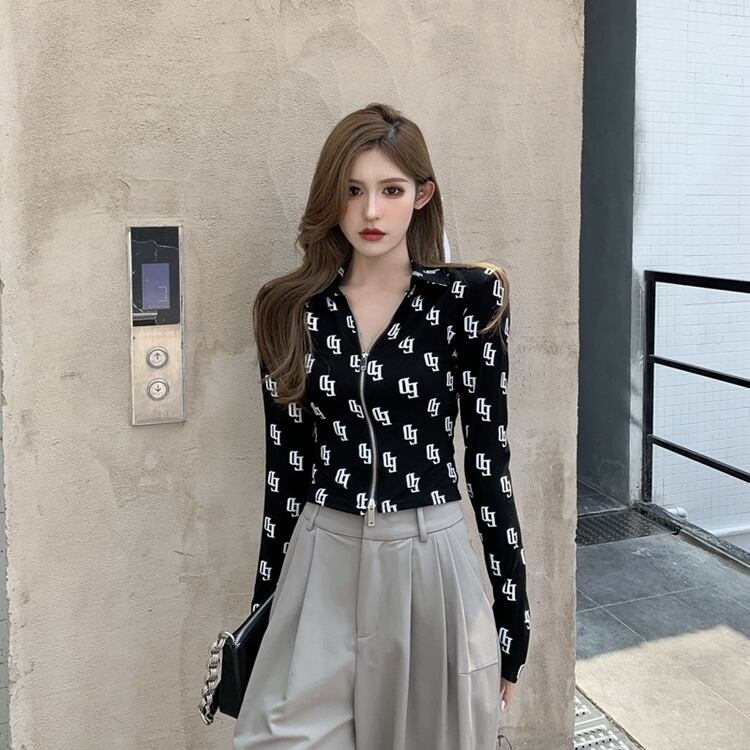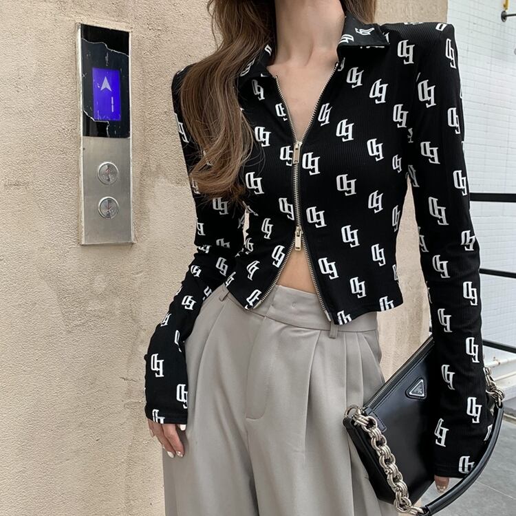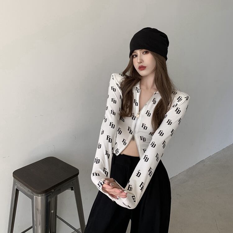 スタイルスタンダードカーディガンニットジャケット スプリングオータムジッパースリムショートシャツ ロング レトロ 春物 秋物 セブンプリンセス20509522175