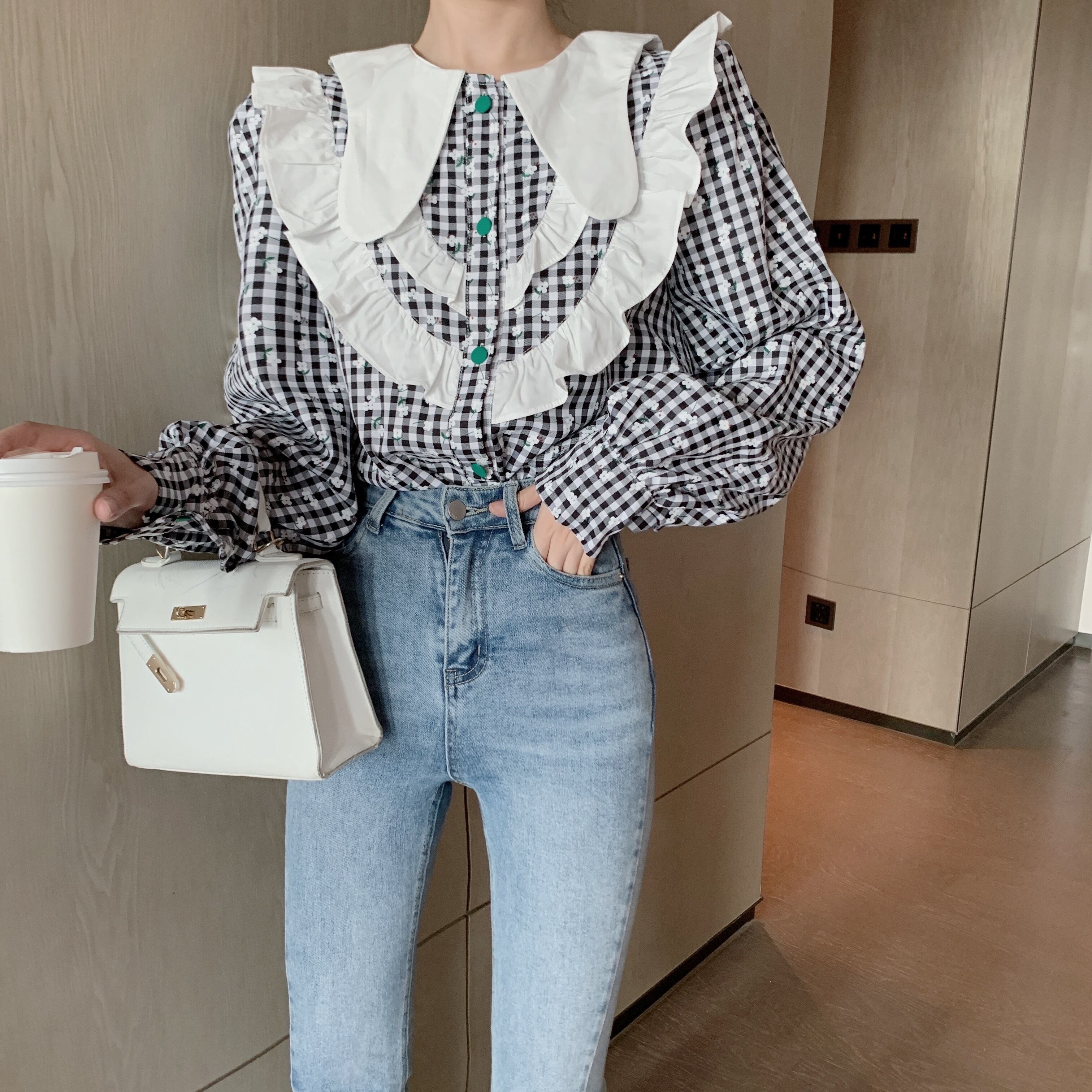 格子柄シャツ オータムルーズスタンダードトップス ロング レトロ 秋物 セブンプリンセス82744558987