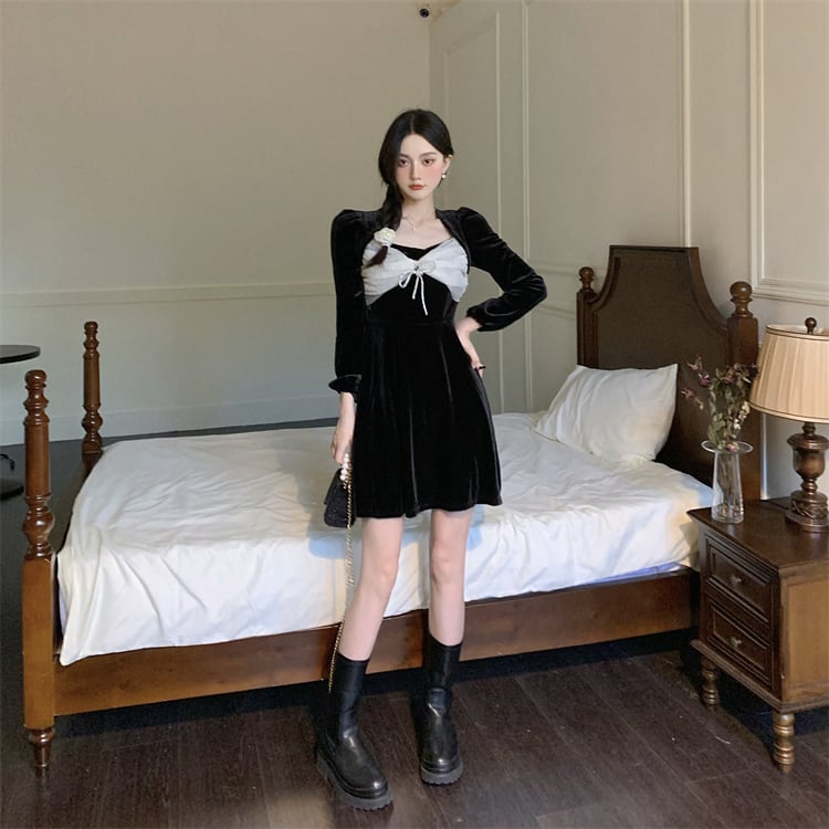ダークスリムスタンダードベルベットドレス レトロ セブンプリンセス23495969613