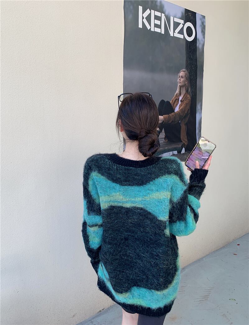 セーター ジャケット レディースルーズ薄手Vネックストライププルオーバー ニット セブンプリンセス15882610108