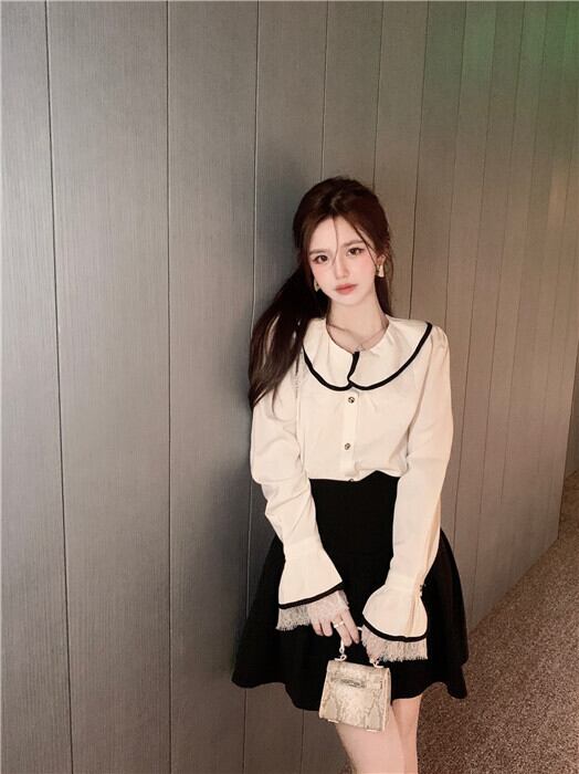 レースシャツ ハイウェストスリムショートスカート ロング 大人ガーリー スウィート キュート カジュアル セブンプリンセス648077001