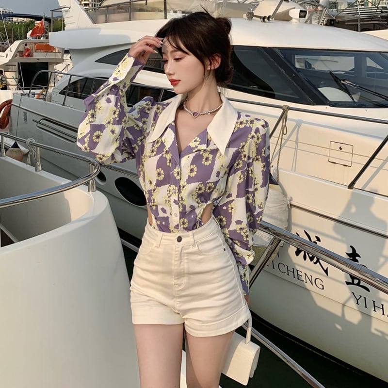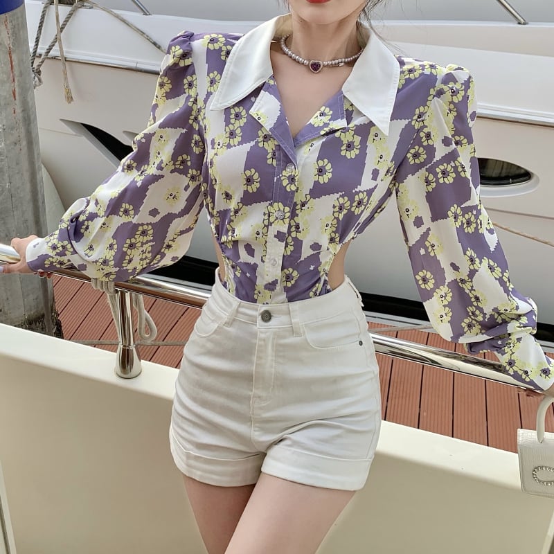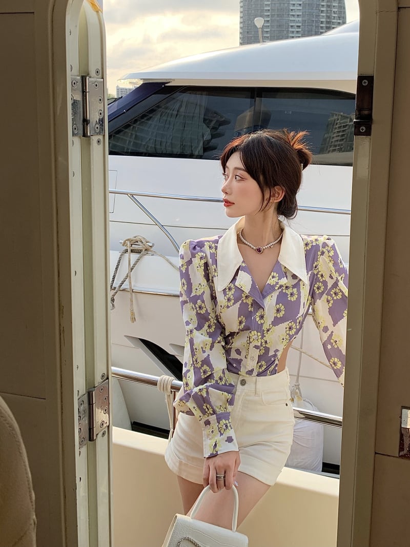 スタイルスタンダードプリント柄シャツ レトロ パープル セブンプリンセス18110978691