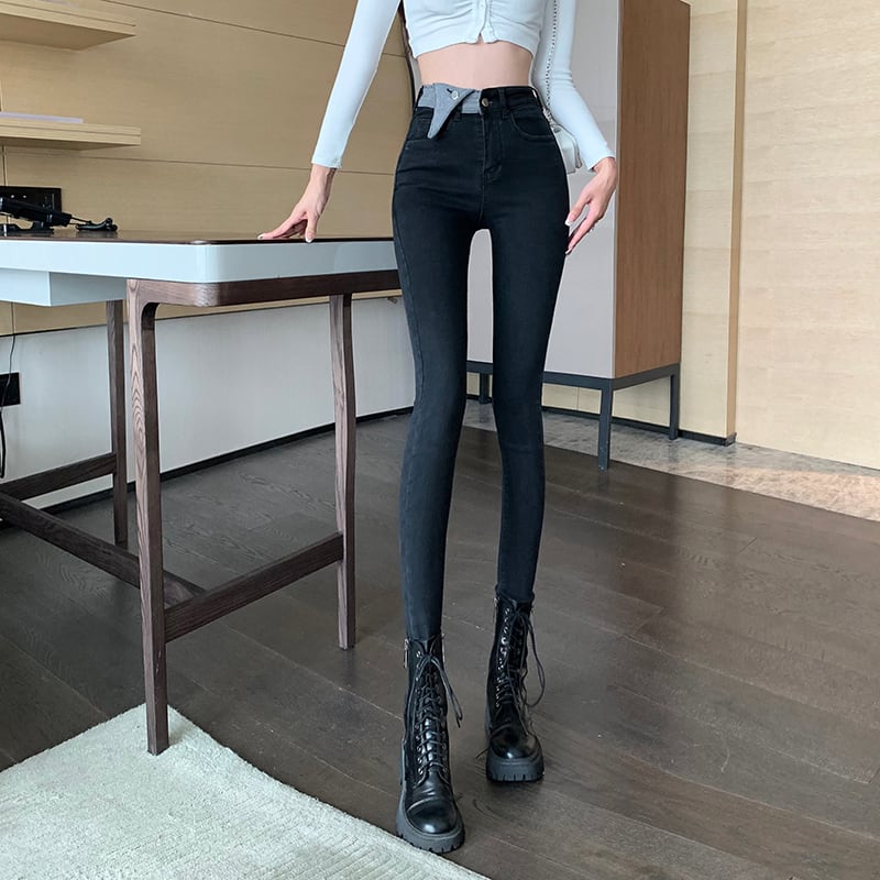 カラーブロックハイウェストウェストスキニーオータムウィンター 秋物 冬物 セブンプリンセス99387746434