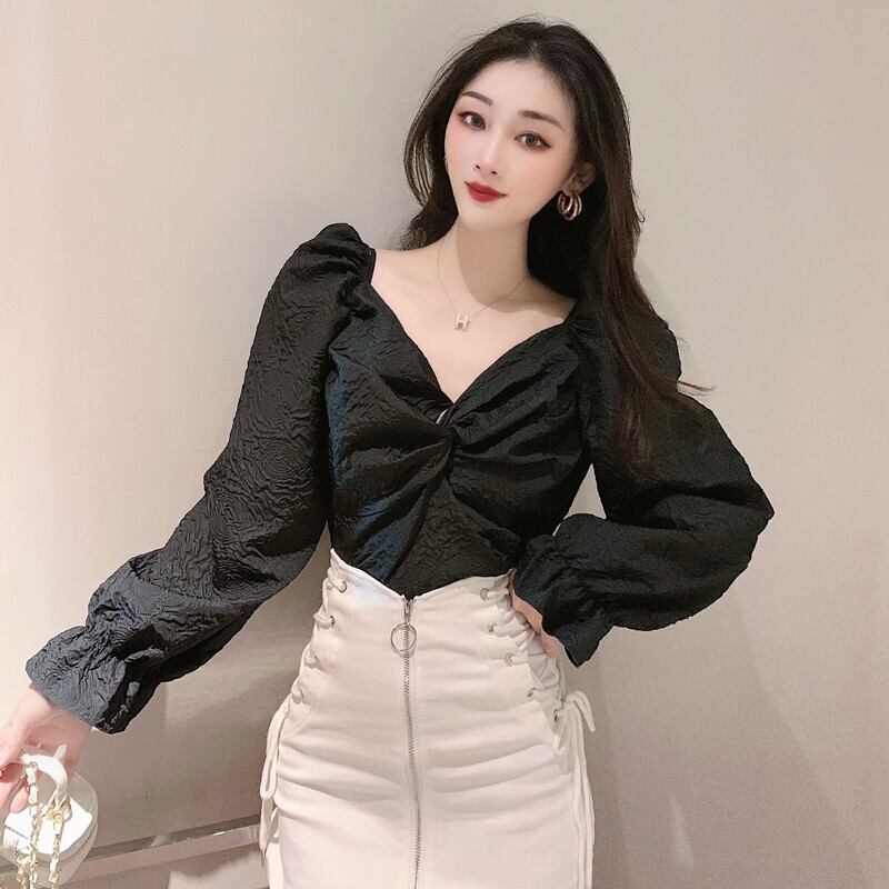 スリーブシャツ Vネックスプリングオータムスタンダードショート薄手トップス ロング レトロ 春物 秋物 セブンプリンセス12490955410