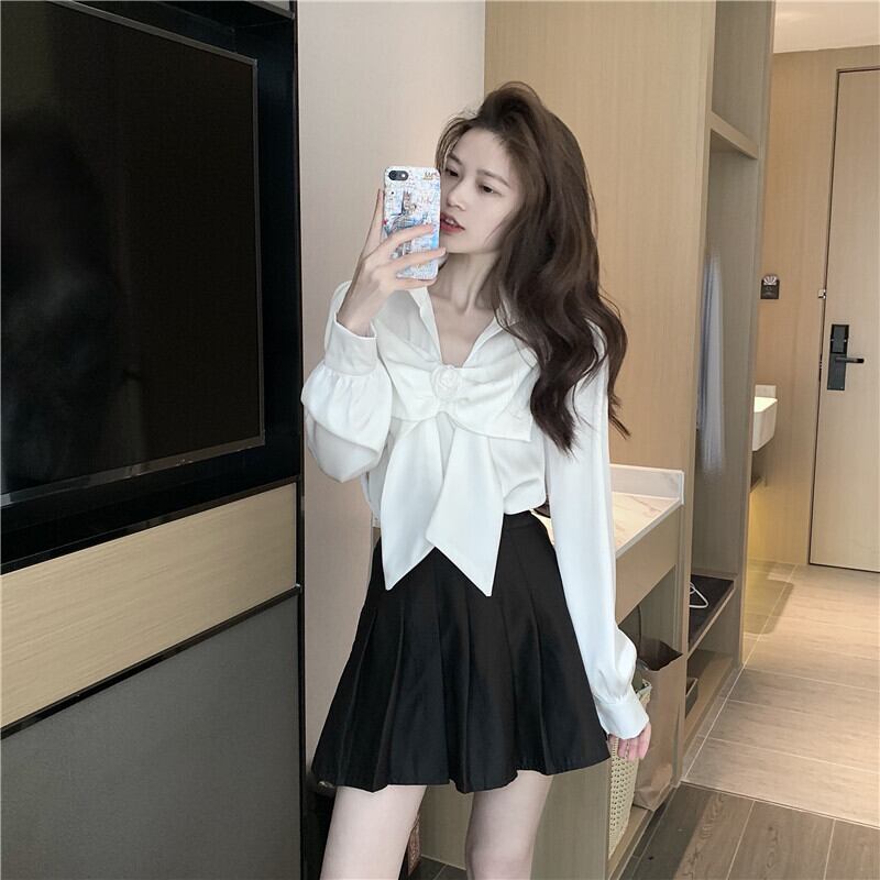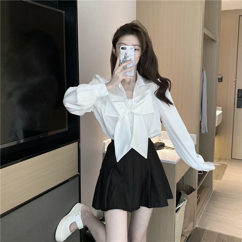 スタンダードスタイルブラウス リボンホワイトシャツ オータム レトロ 秋物 セブンプリンセス20632131905