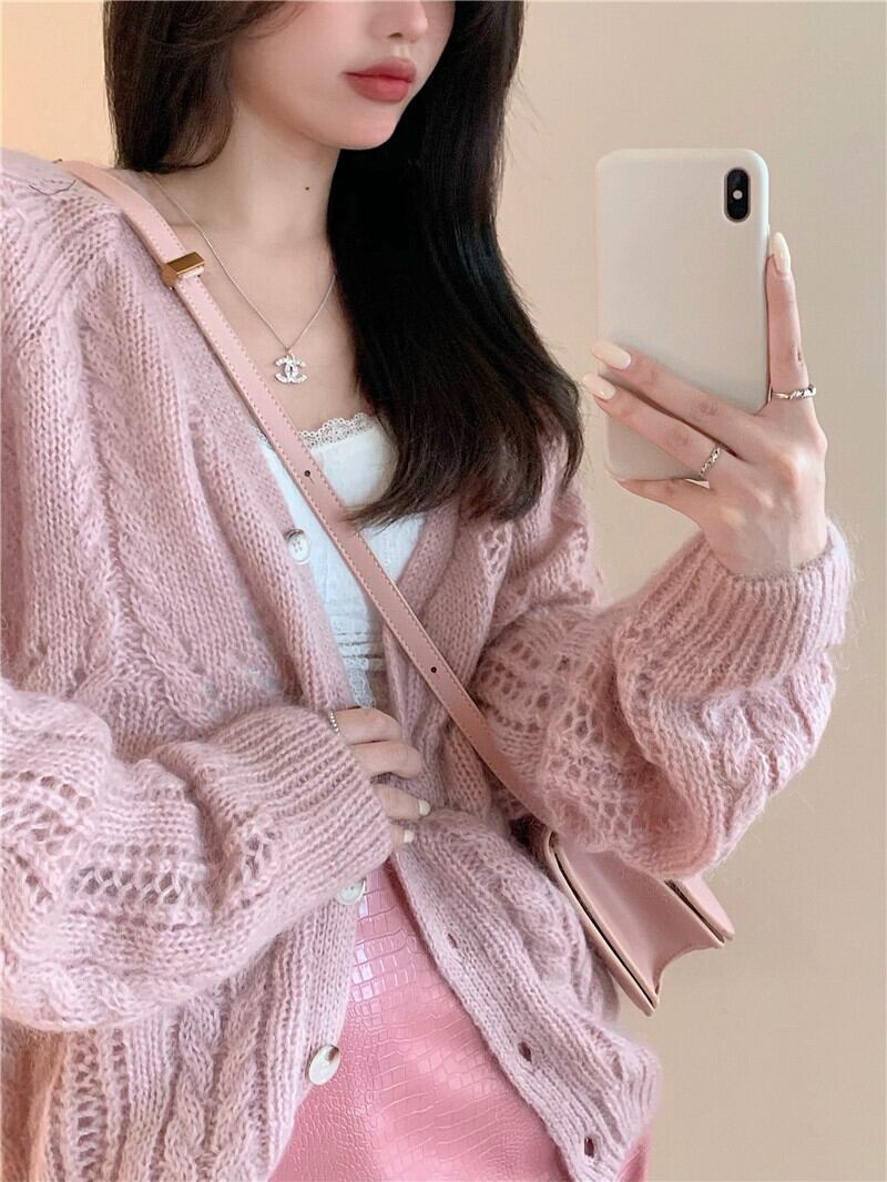 Vネックカーディガンオータムルーズニットセーター 秋物 セブンプリンセス77440256517