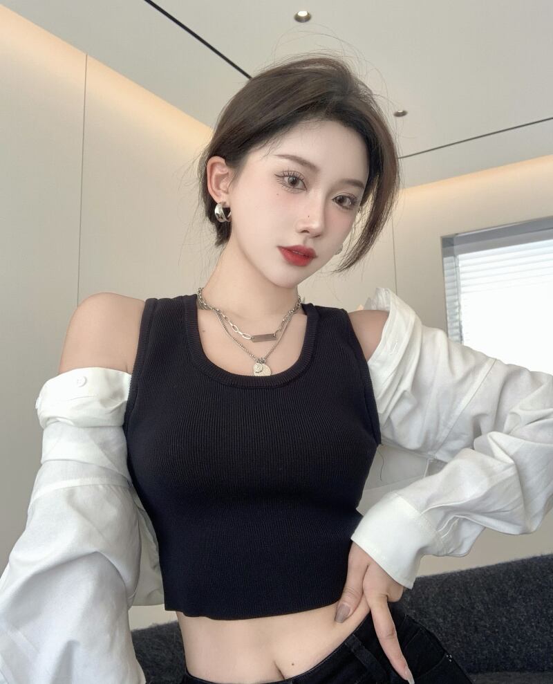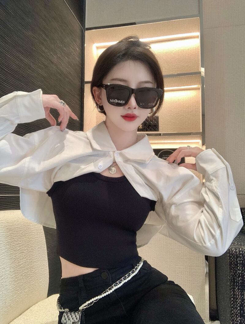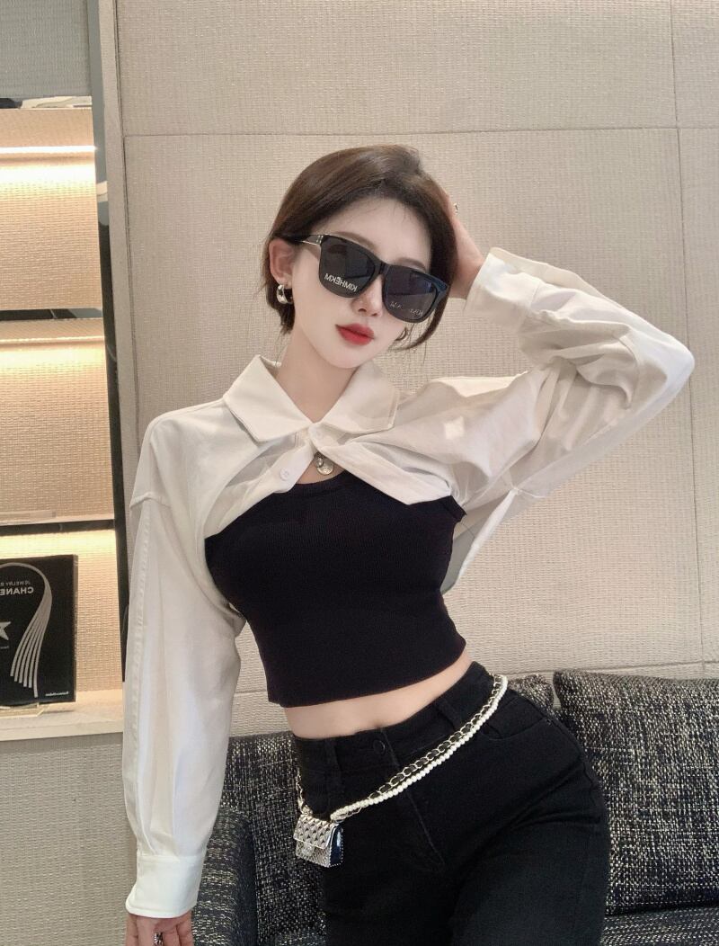 オータムスリムスタイルクロップドトップス ロング シャツ 秋物 ステッチ セブンプリンセス6670041163