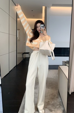 ストライプショートカーディガンニットジャケット オータムトップス ロング 秋物 セブンプリンセス13276262445