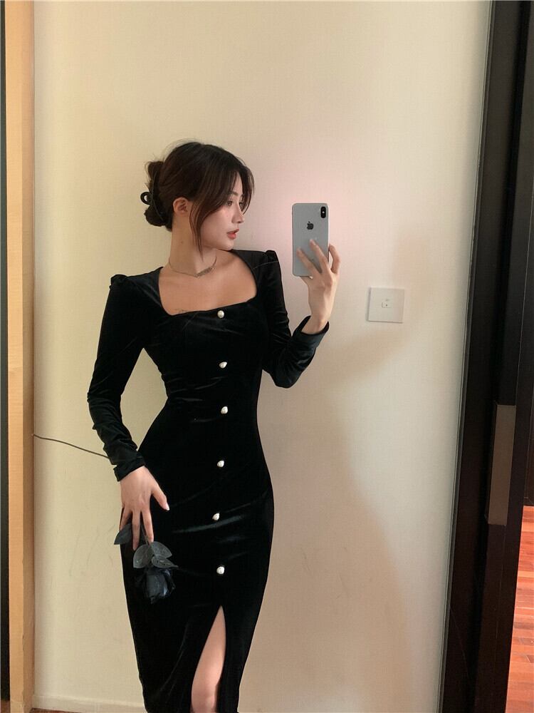 スタンダードカラーベルベットドレス スタイル ロング レトロ スクウェア セブンプリンセス19862134572