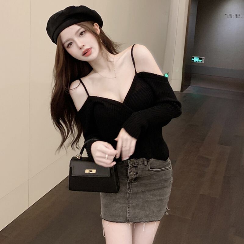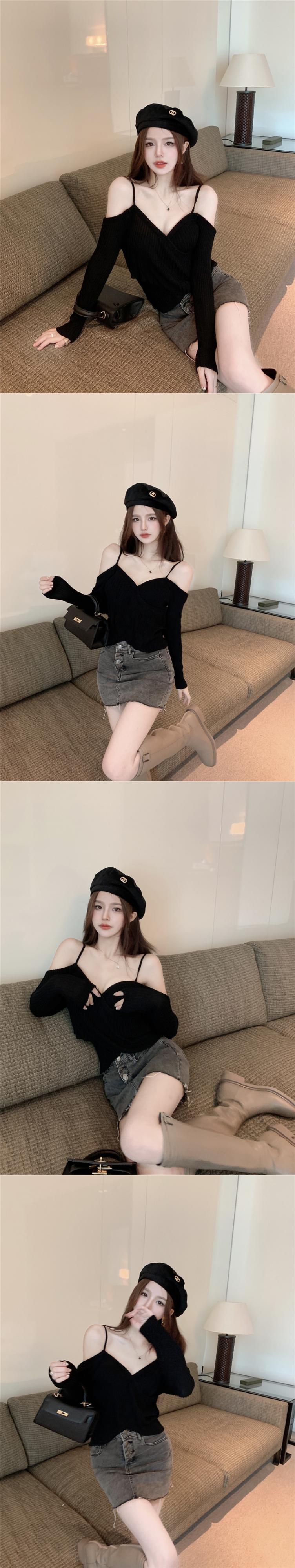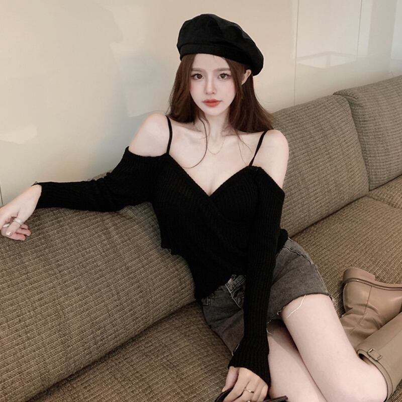 オータムセーター 薄手スタイルVネックショートルーズトップス ロング 秋物 セブンプリンセス53288402919