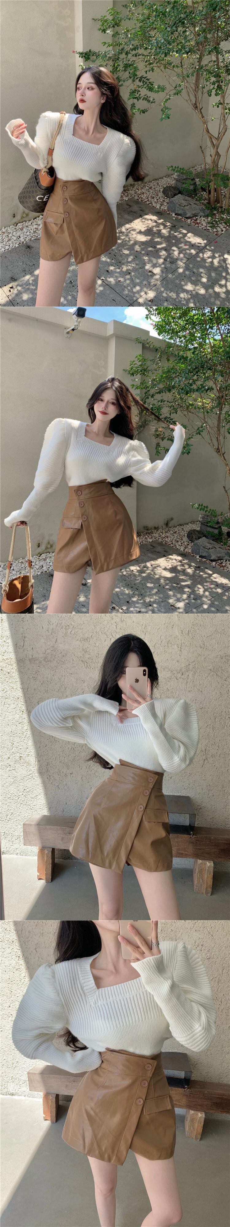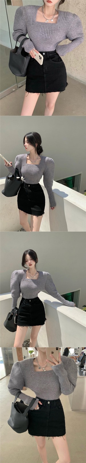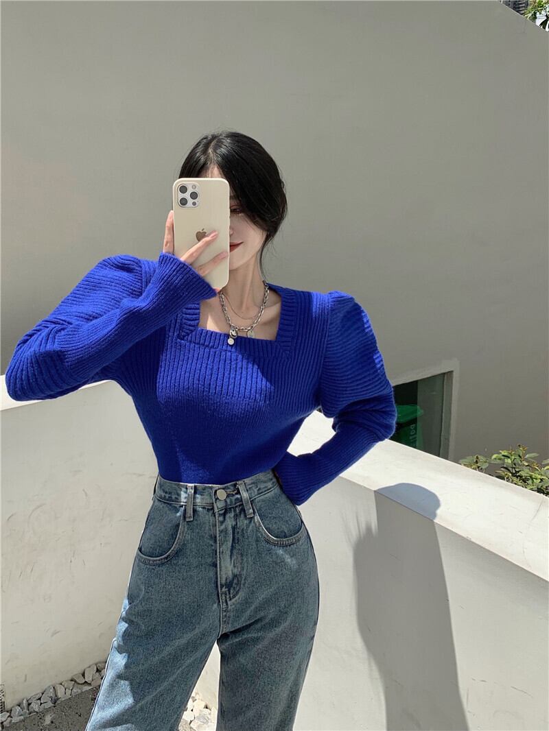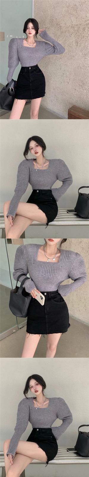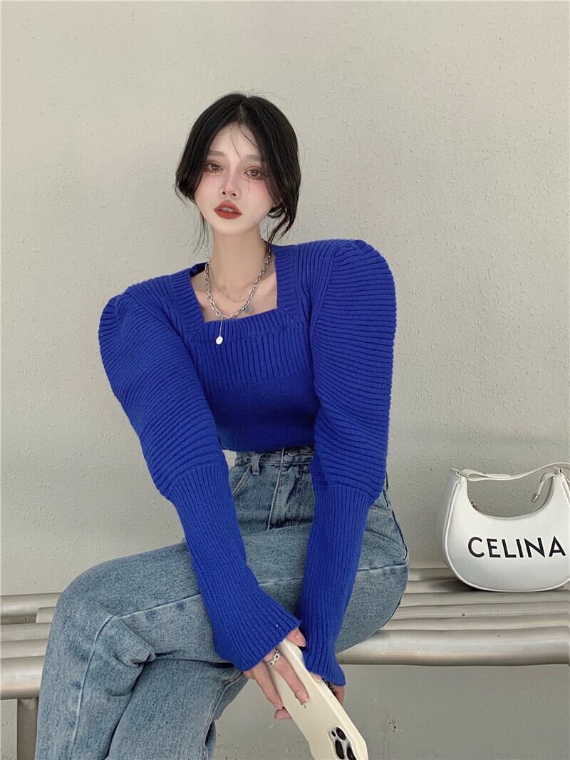 薄手ブラウス ソリッド カラーニットスタイルスリーブセーター ウィンター 冬物 ソリッドカラー スクウェア セブンプリンセス56257185070