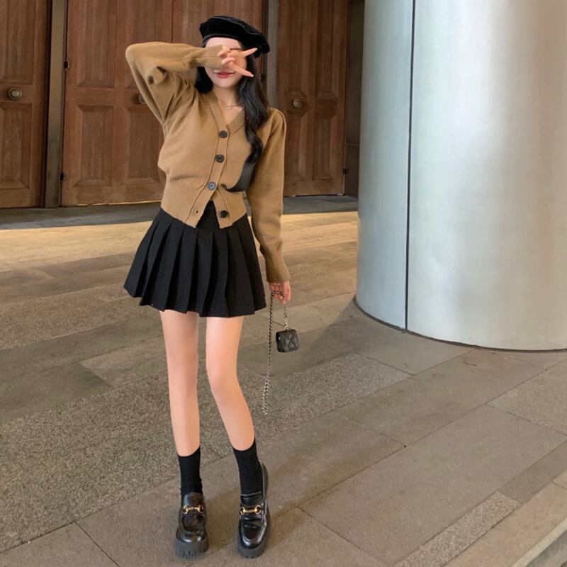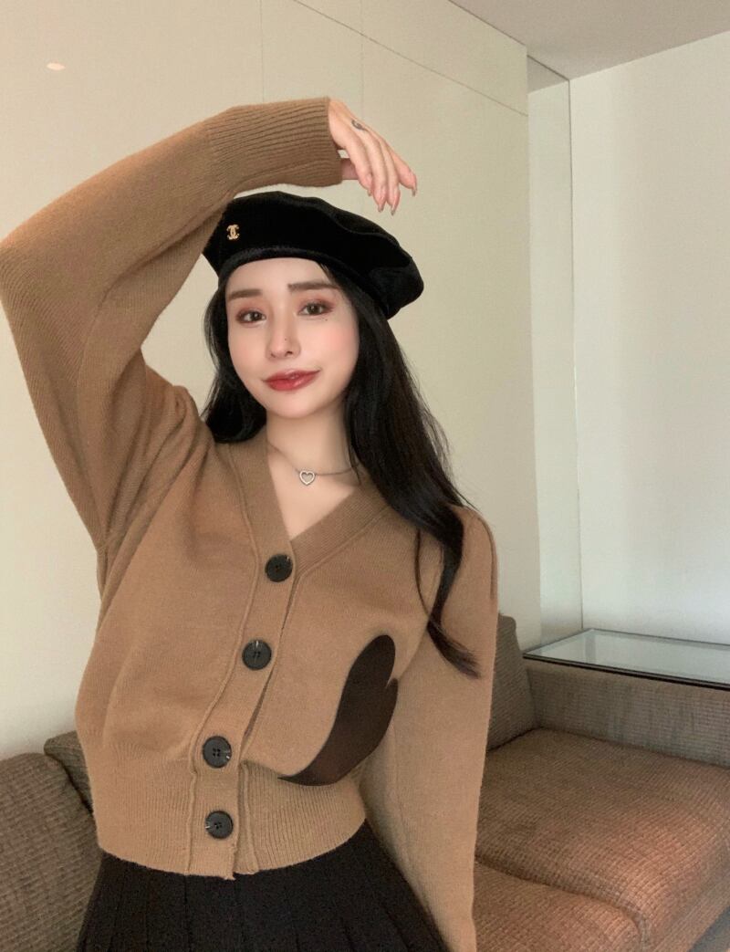 スタンダードVネックセーター コート カーディガンレディーススプリングオータムショートニットブレストトップス ロング レトロ 春物 秋物 セブンプリンセス28029790350