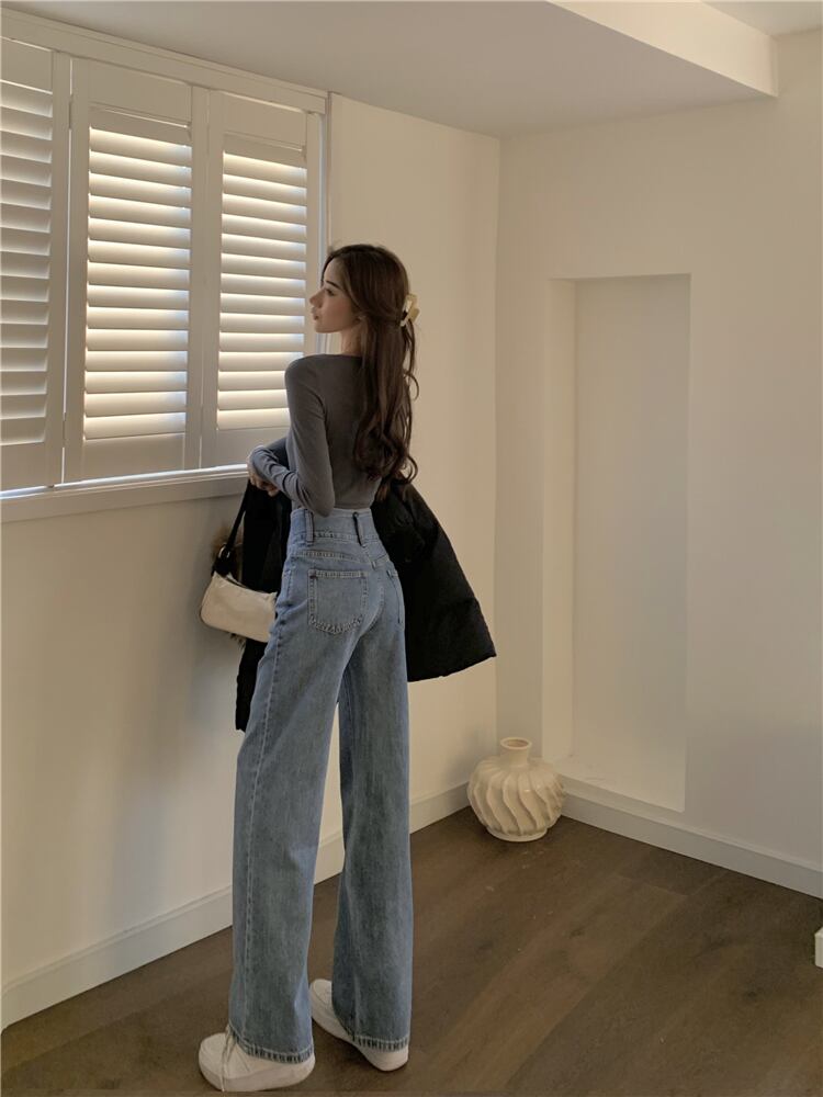 スタンダードジーンズ スプリングオータムルーズハイウェスト レトロ 春物 秋物 セブンプリンセス1569242704