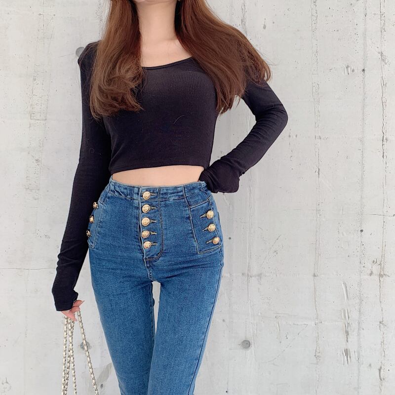 オータムウィンターハイウェストジーンズ スタイル薄手パンツ 秋物 冬物 セブンプリンセス57325223250