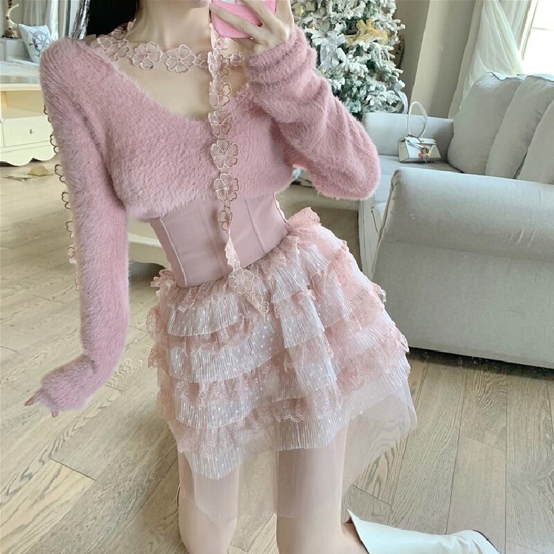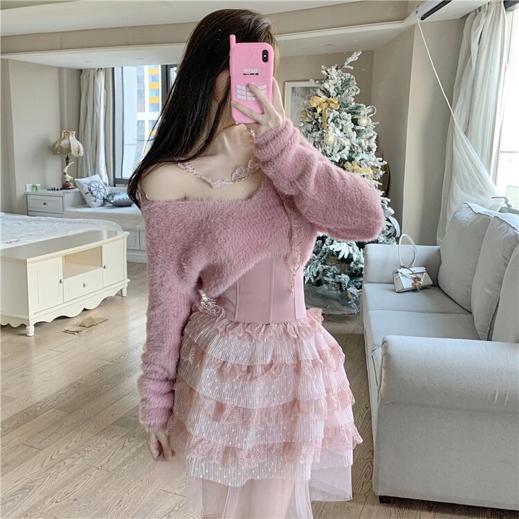 レーススリムセーター ハイウェストスカート ロング ステッチ セブンプリンセス30046314053