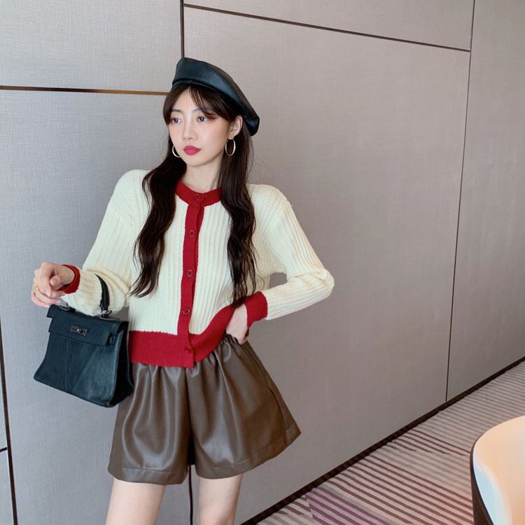スタイルカラーセーター カーディガンストレッチハイウェストレザーショーツ ロング エラスティック 伸縮 ブルマー ステッチ セブンプリンセス26949261605